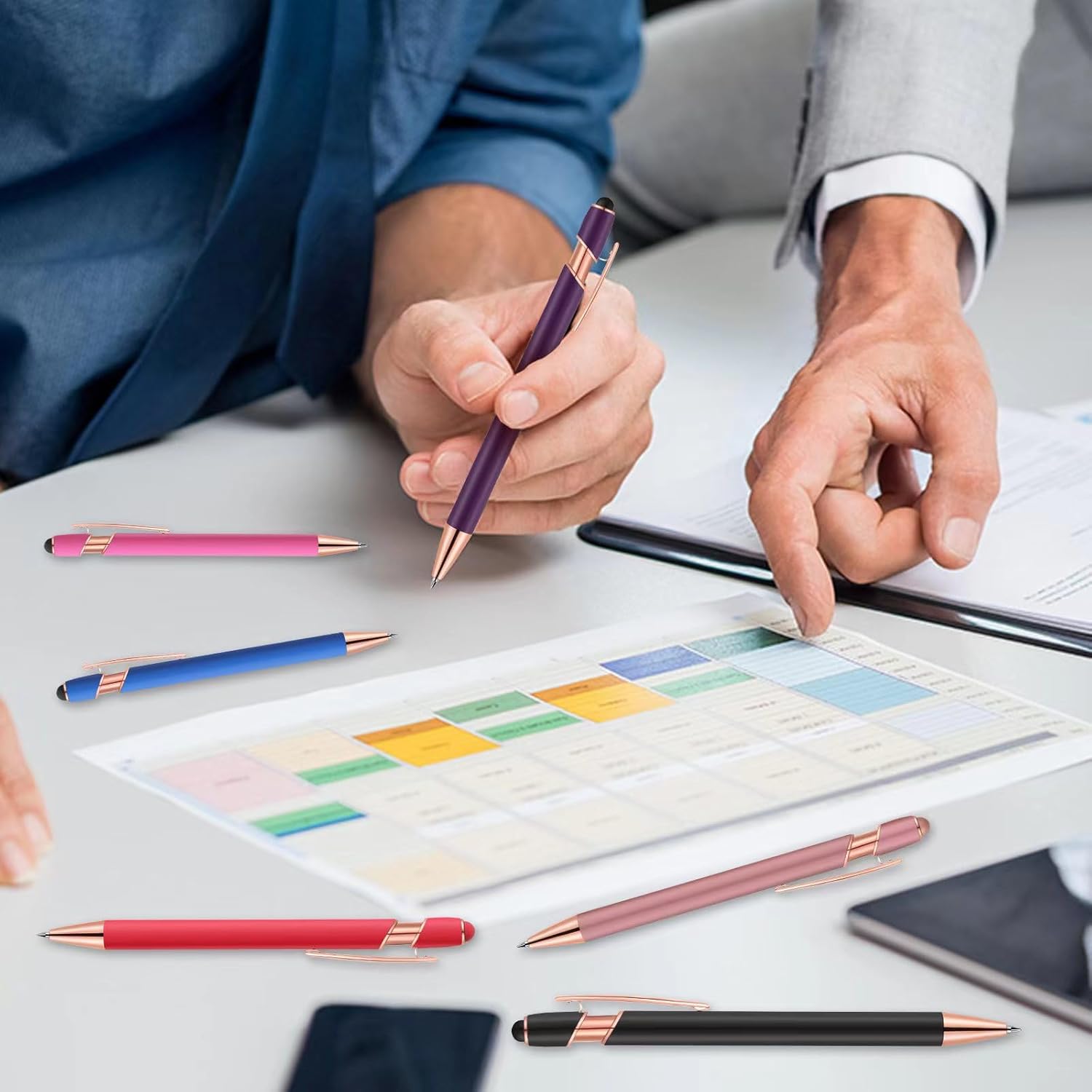 12 PCS 2 in 1 Stylus Ballpoint Pen with Stylus Tip, 1.0 mm Black Ink Metal Pen Stylus Pen for Touch Screens (12 Colors-2)