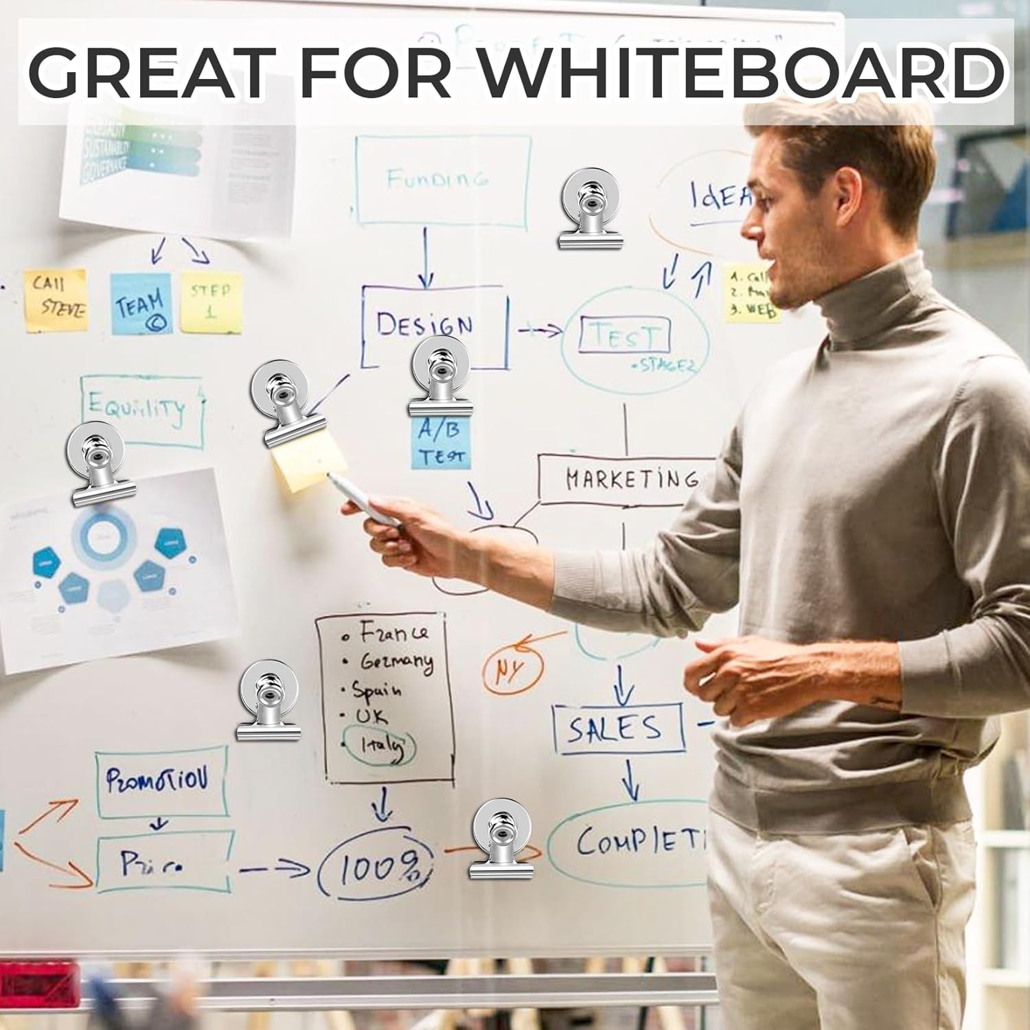 - Strong and Secure: Experience the power of heavy-duty magnetic clips. Safely hold over 25 sheets of A4 paper, preventing slips or falls on any metal surface.
