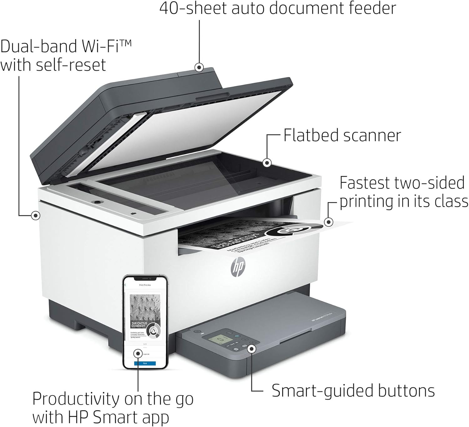 - FASTEST TWO-SIDED PRINTING IN ITS CLASS β Black & white precision laser printing plus scan, copy, an auto document feeder and wireless connectivity