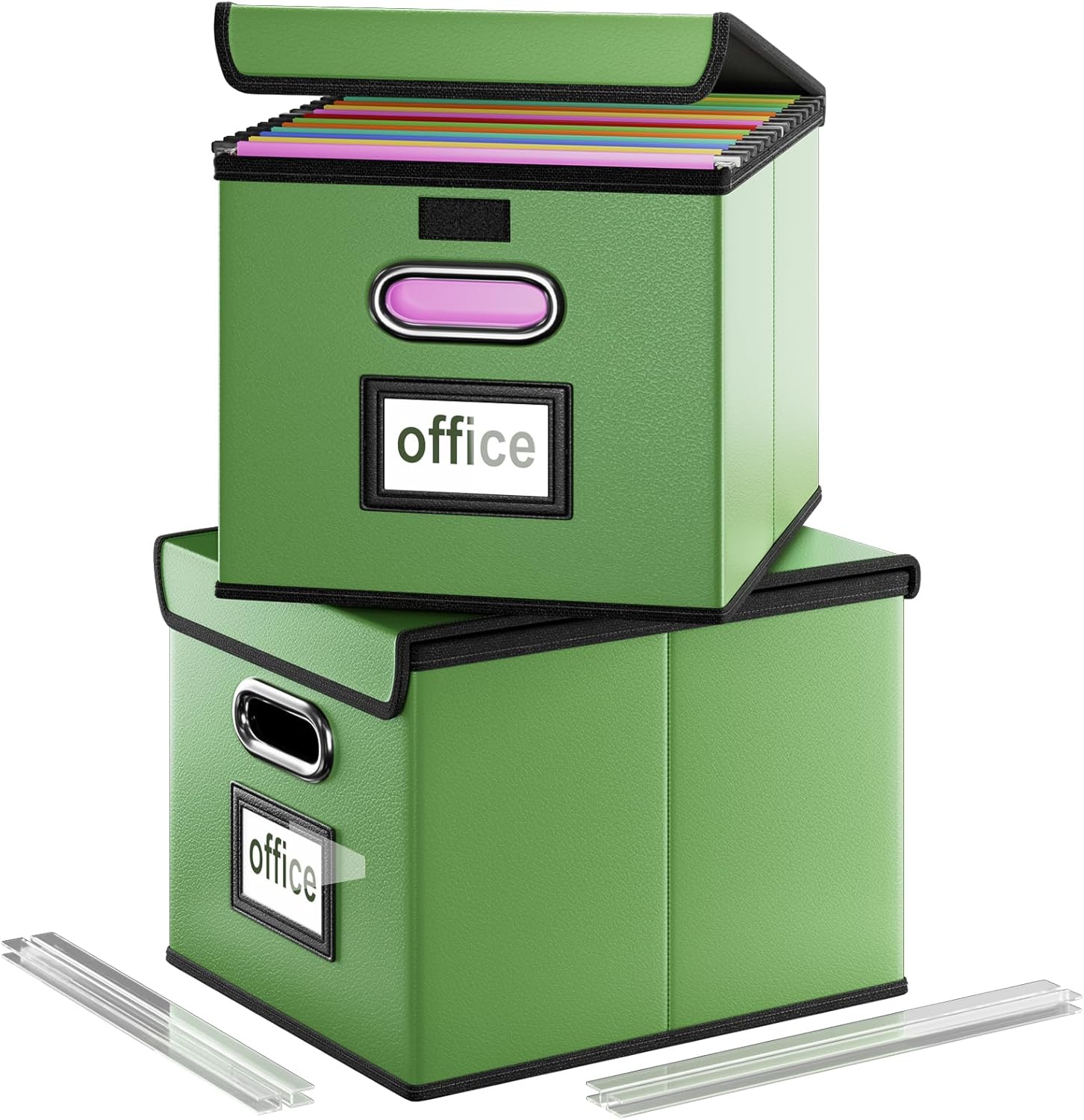 - Portable Filing File Cabinet for Home/Office- The outer box with leather can be dustproof, inside and the bottom support is made of thickened cardboard, which is environmentally friendly and not easily deformed. The cover with Velcro not only allows us to cover the file box easily, but provides more storage space for the file and folders. It also acts as a small filing cabinet for tax documents, legal files and other documents storage. When we are not using it, we can fold it up to save space.