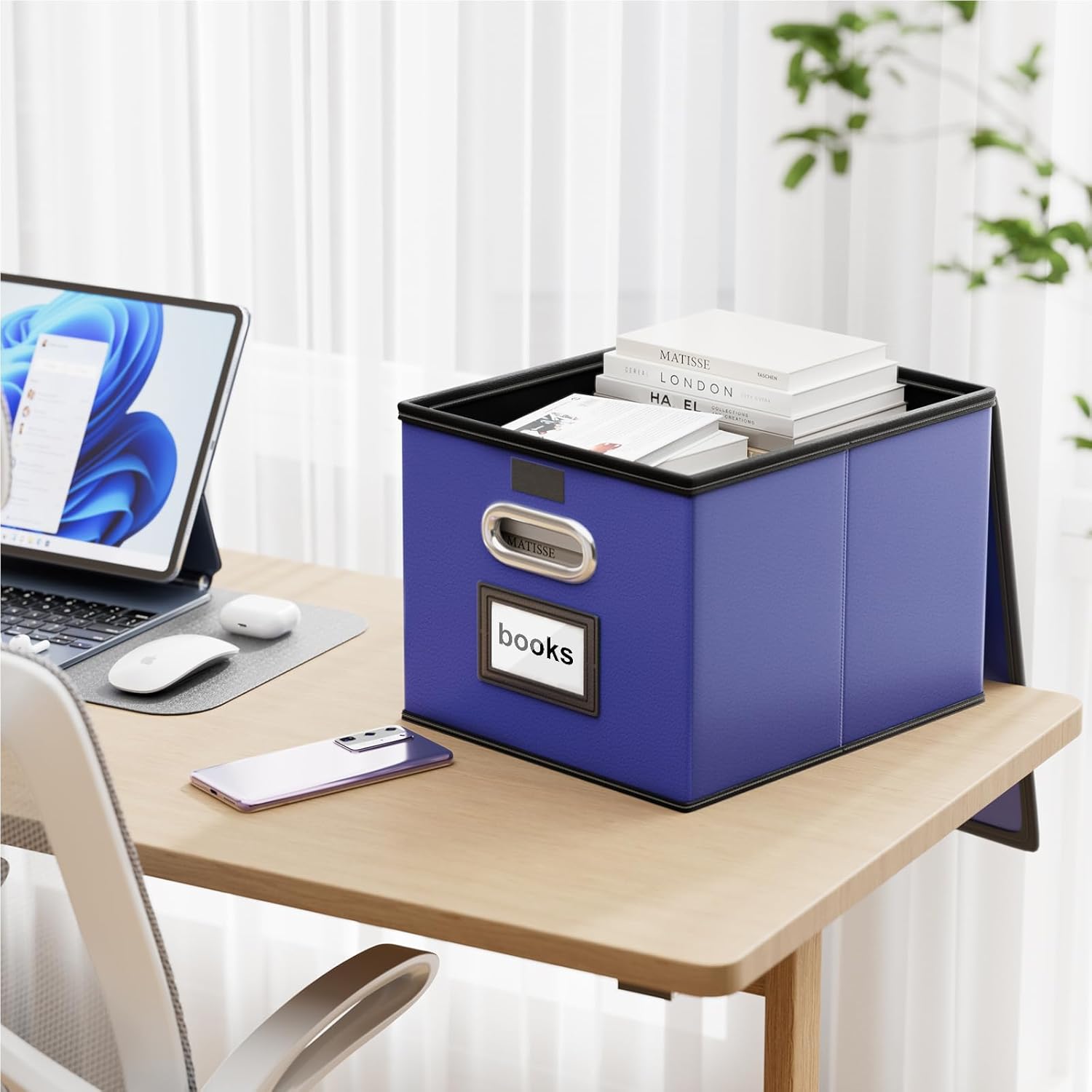 - Collapsible Multifunctional Filing Storage Organizer - The outer box with leather can be dustproof, inside and the bottom support is made of thickened cardboard, which is environmentally friendly and not easily deformed. The cover with Velcro not only allows us to cover the file box easily, but provides more storage space for the file. It also acts as a small filing cabinet for tax documents, legal files and other documents storage. When we are not using it, we can fold it up to save space.