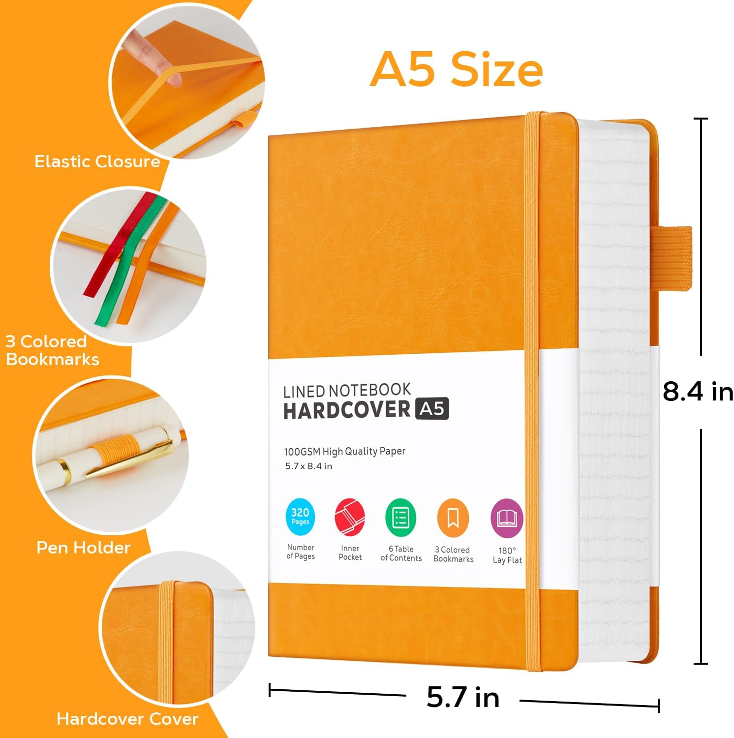 - 【320 Pages Hardcover Thick Notebook】This faux leather journal notebook A5 (5.7'' X 8.4'') size lined notebook journal has a total of 320 pages (including 6 catalog pages), 7mm space classic college ruled notebook, providing you with plenty of writing space.