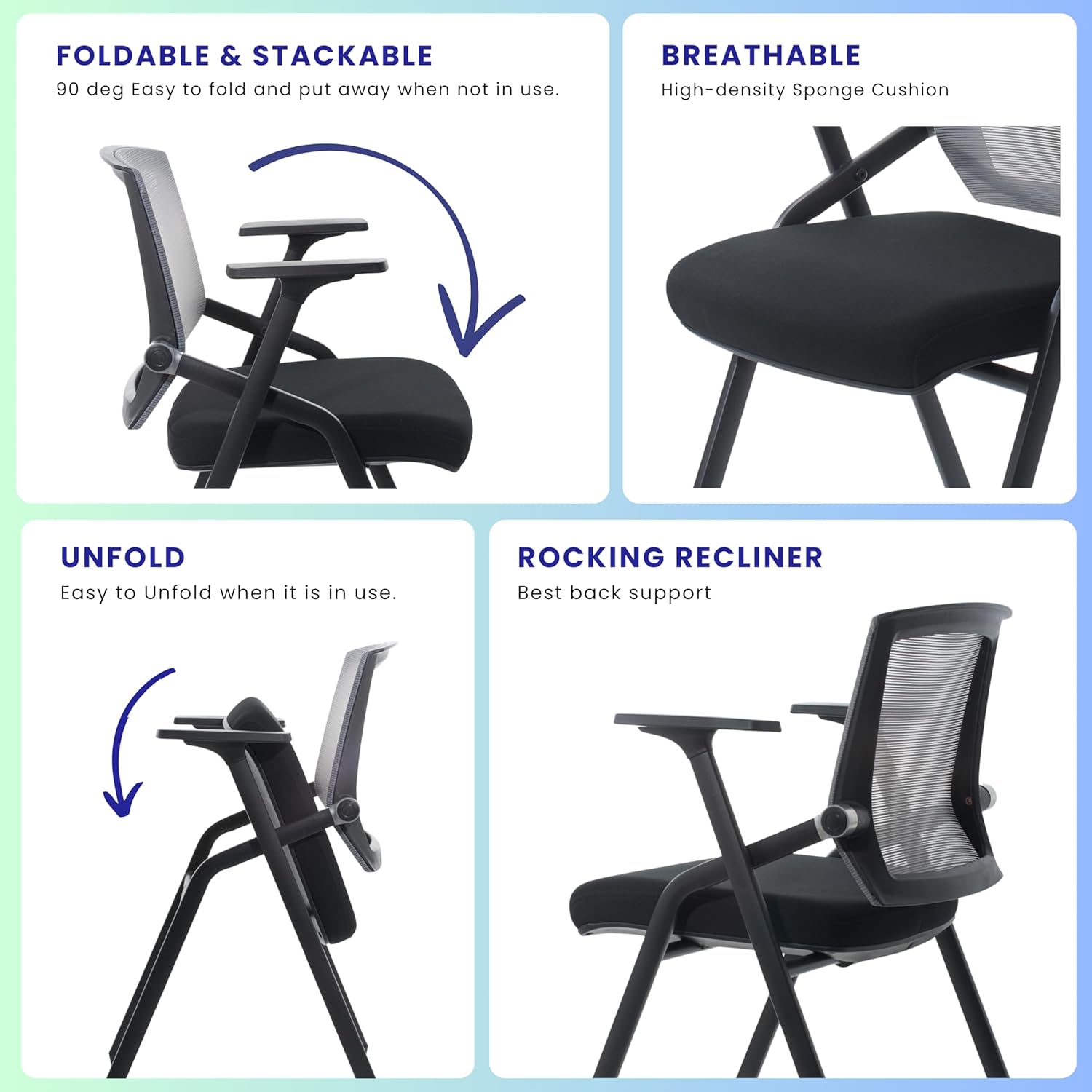 2 Pack Stackable Conference Room Chairs with Paddle Folding Office Chair Foldable Desk Chair Mesh Back and Arms for Conference Meeting Guest Reception Home Office Training Room Chair