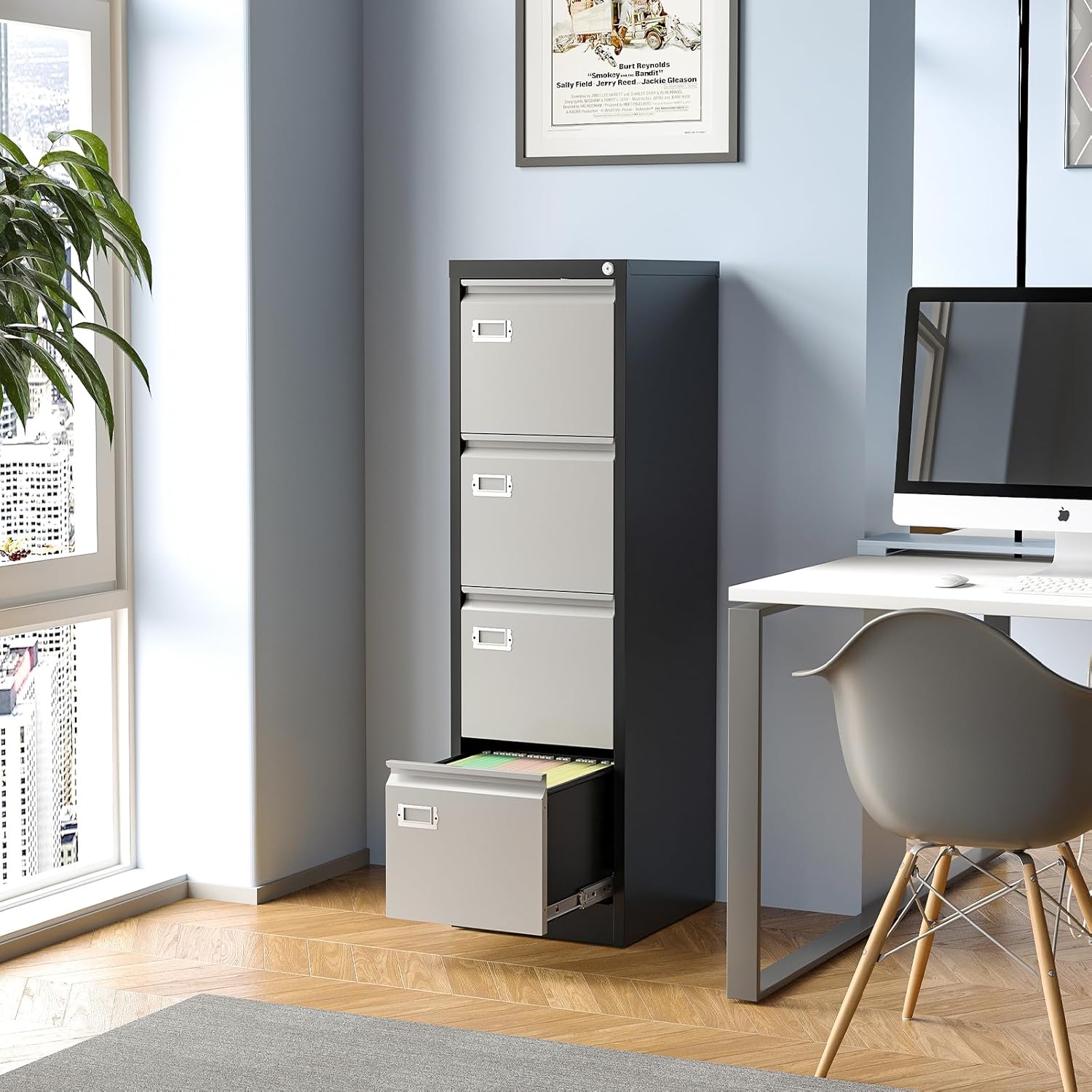 - 【Anti-Tilt Design】This office file cabinets has a lock that can lock all four drawers and comes with two keys. It helps you keep your valuables and documents safe. In the unlocked state, only one drawer can be pulled out at a time, preventing the movement of multiple drawers causing the overall center to shift and the box to fall.