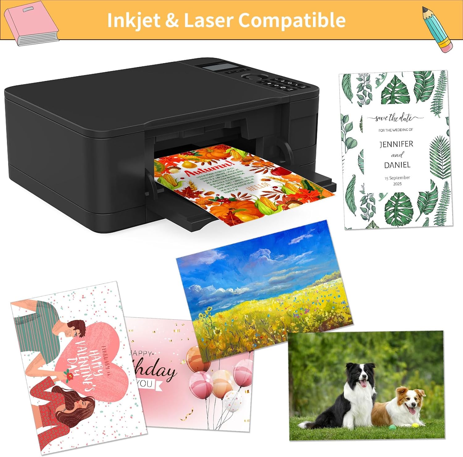 - Printer Friendly: white shimmer cardstock is thicker than printing paper, compatible with most types of inkjet and Laser, It holds colors well and delivers rich, vibrant colors and sharp images with flawless results. Perfect stock paper for home,school and office