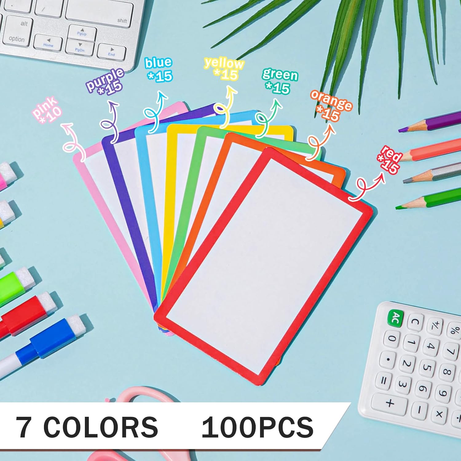 Harloon 100 Pcs Dry Erase Index Cards 3 x 5 Inch Laminated Reusable Dry Erase Note Cards Sheets for Office to Do List (Multicolored)
