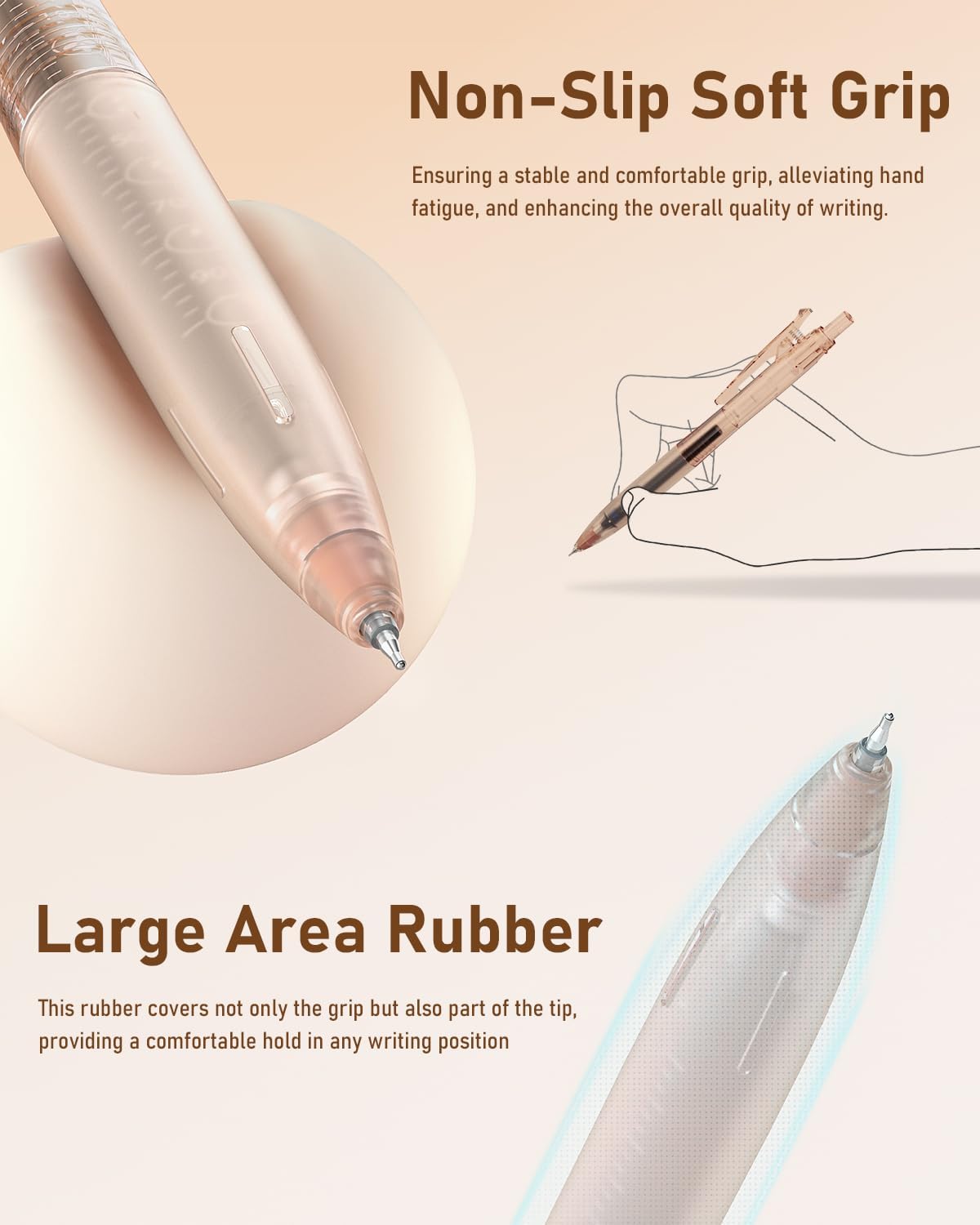 - Comfortable Rubber Grip: These gel pens set with soft ergonomic rubber grip is comfortable and non-slip, it easy to hold and reduces hand fatigue and improves writing control, especially during extended writing sessions, giving you good writing and drawing experience
