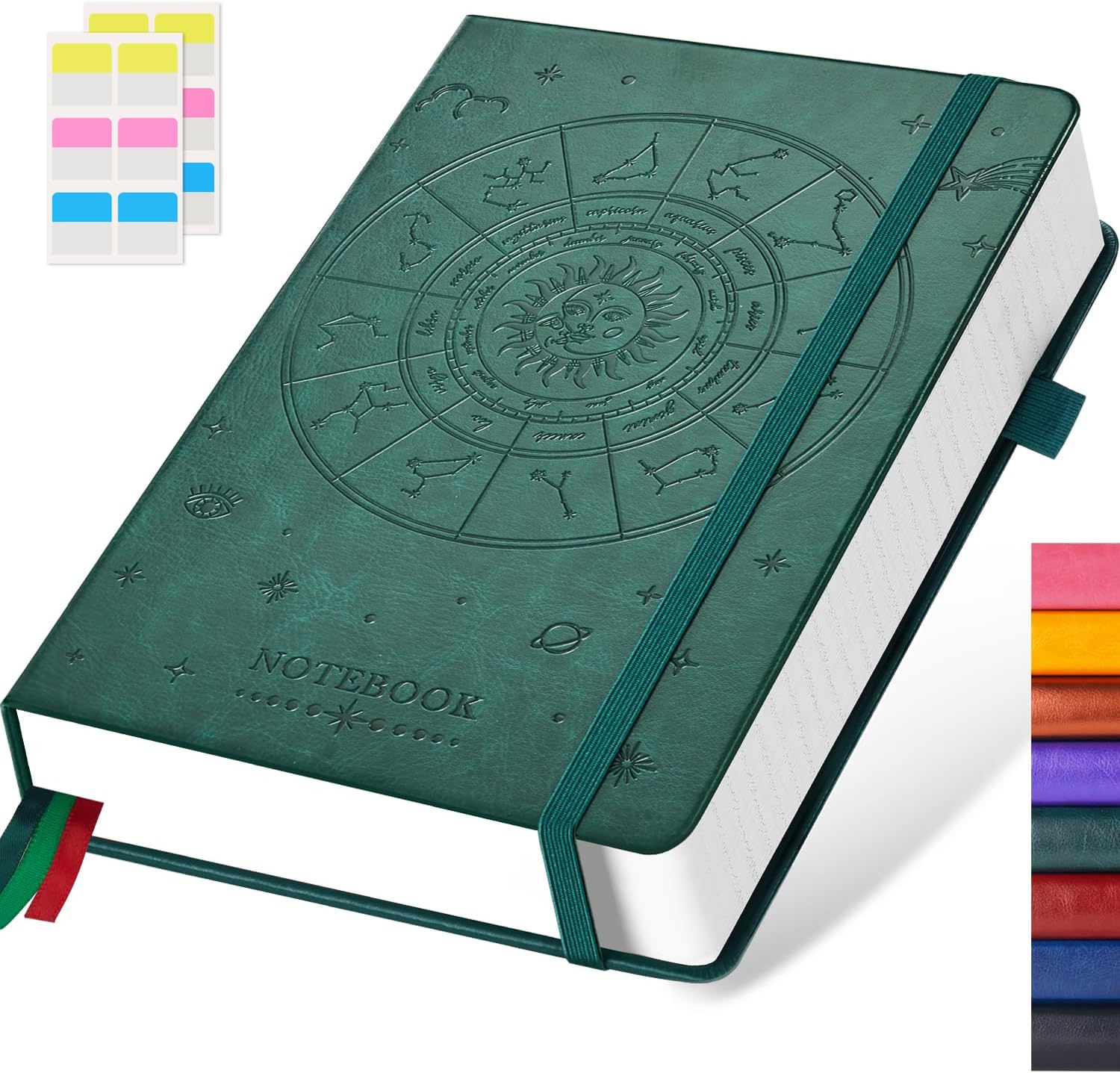 Hardcover Notebook Journal, A5 Lined Daily Journal College Ruled Notebook for Women Men, 320 Pages Thick Writing Journal Notebook for School Work, Dark Green Leather Notebook, 5.7'' X 8.4''