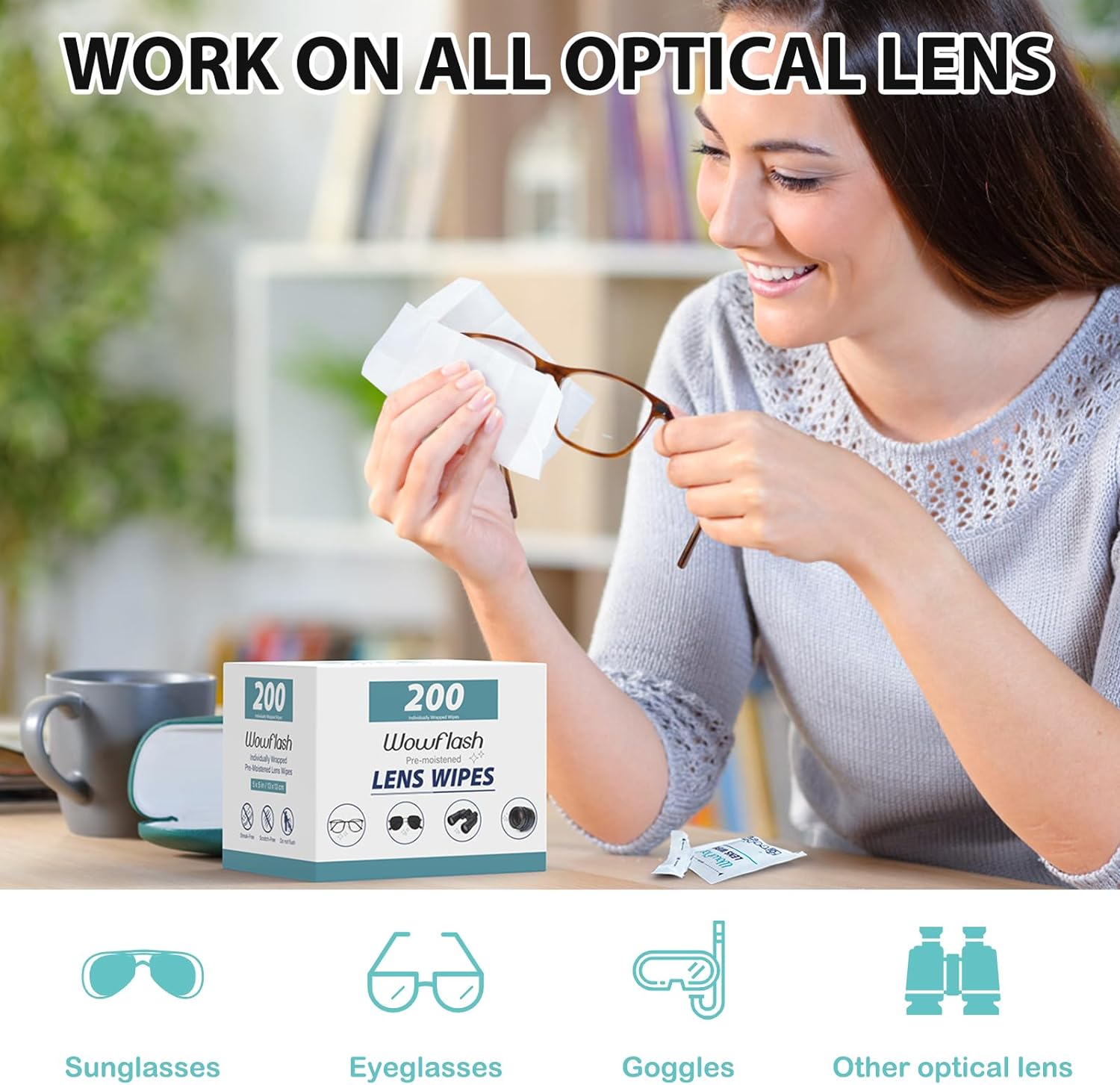- 【Effective Cleaning】Wowflash lens wipes for eyeglasses, lens cleaning wipes with innovative formula help gently and effectively remove dirt, dust and fingerprints from Eye Glasses, Sunglass, Camera Lens, Goggles.
