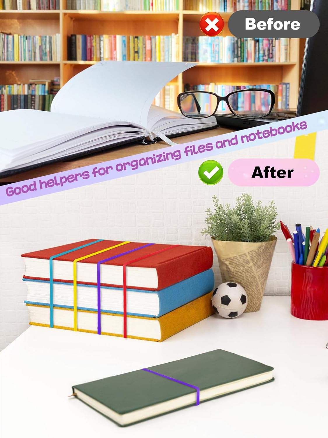 - Sufficient Quantity of Colored Rubber Bands: This product contains 120 pcs of multi-function large colored rubber bands, which are enough for you to use for a long time. Four different colors will be more convenient to categorize and organize. This product can be reused, reducing the use of rope and wrapping paper, avoiding excessive packaging, and helping your environmental protection actions.