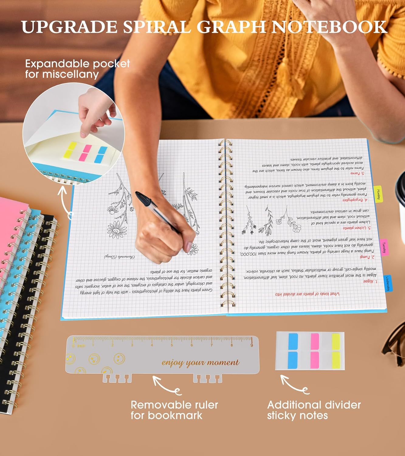 - 【A4 Graph Spiral Journal Notebook】 Large a4 size 8.5"x11" grid notebook, standard 5mm x 5mm graph paper for better writing and drawing experience. The professional sturdy water-resistant plastic hard cover will protect your graphing notebooks to last for years, which has oil-resistant and anti-bending properties, effectively protecting the internal paper of the journal and provides a comfortable writing surface.