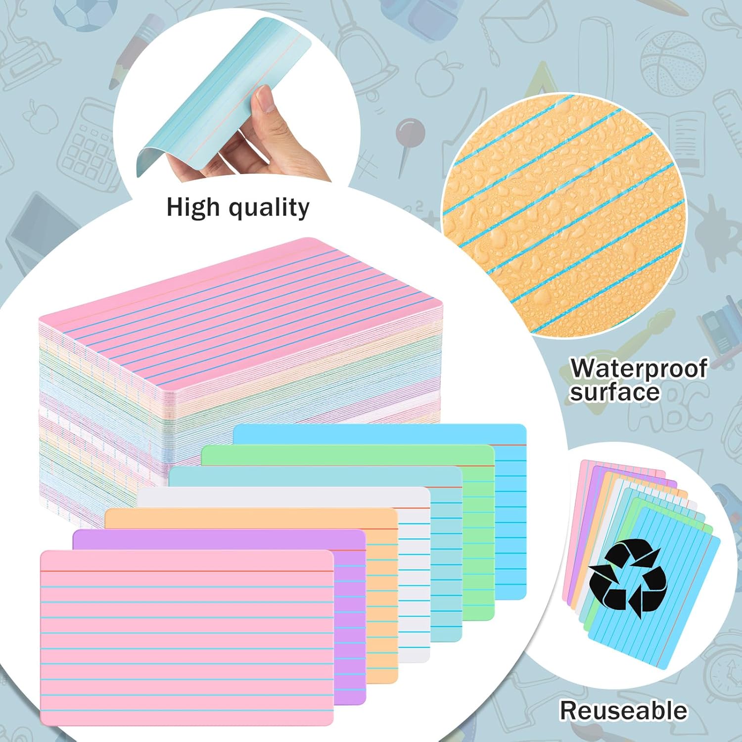 Harloon 100 Pcs Dry Erase Index Cards 3 x 5 Inch Laminated Reusable Dry Erase Note Cards Sheets for Office to Do List (Ruled Candy Color)