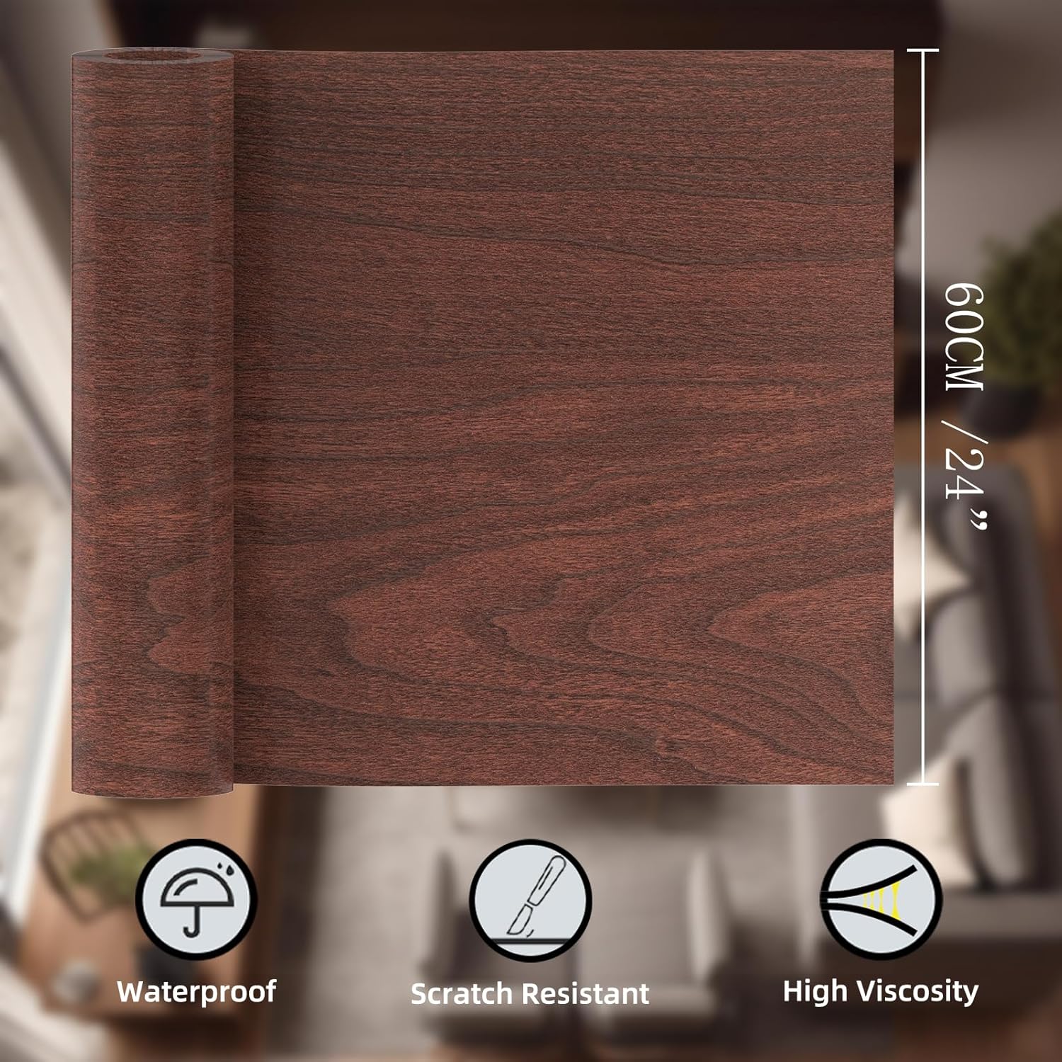 GSCIT Club Cherry Wallpaper, 24 inch X 25ft Self Adhesive Wood Grain Repair Tape Patch for Tables, Chairs, Baseboards, Doors, Windows, Floors, Handicraft DIY.