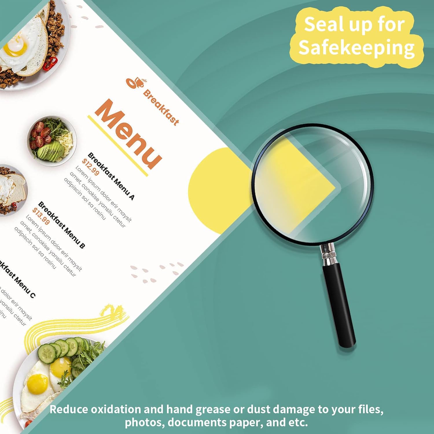 - š„Widely Used: Laminating sheets widely used in the protection of documents, photos, specimen albums, menus, newspaper clippings, cards, office documents and other graphic materials.