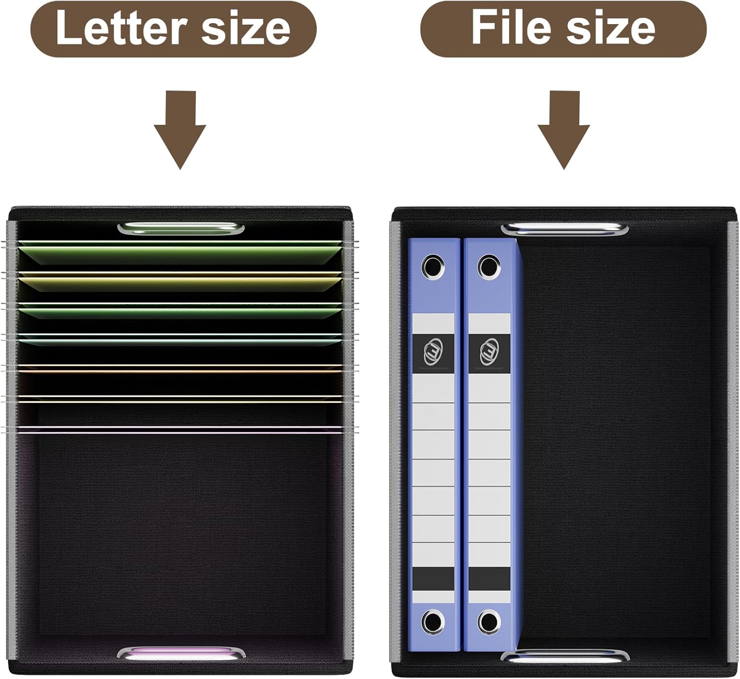 - Collapsible Multifunctional Filing Storage Organizer - The outer box with leather can be dustproof, inside and the bottom support is made of thickened cardboard, which is environmentally friendly and not easily deformed. The cover with Velcro not only allows us to cover the file box easily, but provides more storage space for the file. It also acts as a small filing cabinet for tax documents, legal files and other documents storage. When we are not using it, we can fold it up to save space.