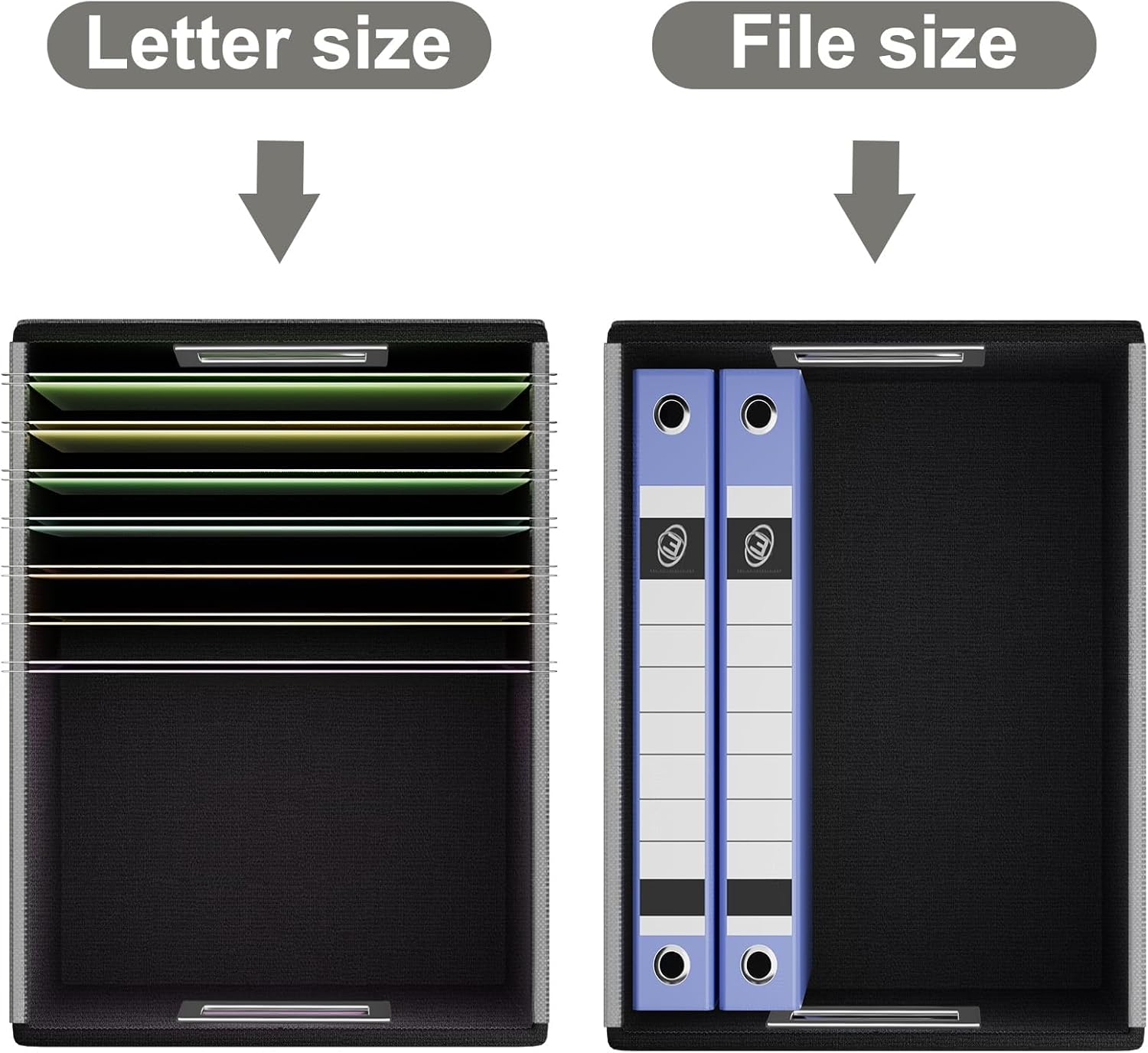 - Unique Functional Design - This file boxes both sides are equipped with practical PVP slide rails, which can not only prevent the two sides of the file storage box from loosening, but also facilitate the sliding of the file folder, which is very suitable for hanging file folders. The metal handles on both sides allow us to easily move the storage box, and the label slot on one side facilitates classification. Functional features and a beautiful design create the best filing box organizer.