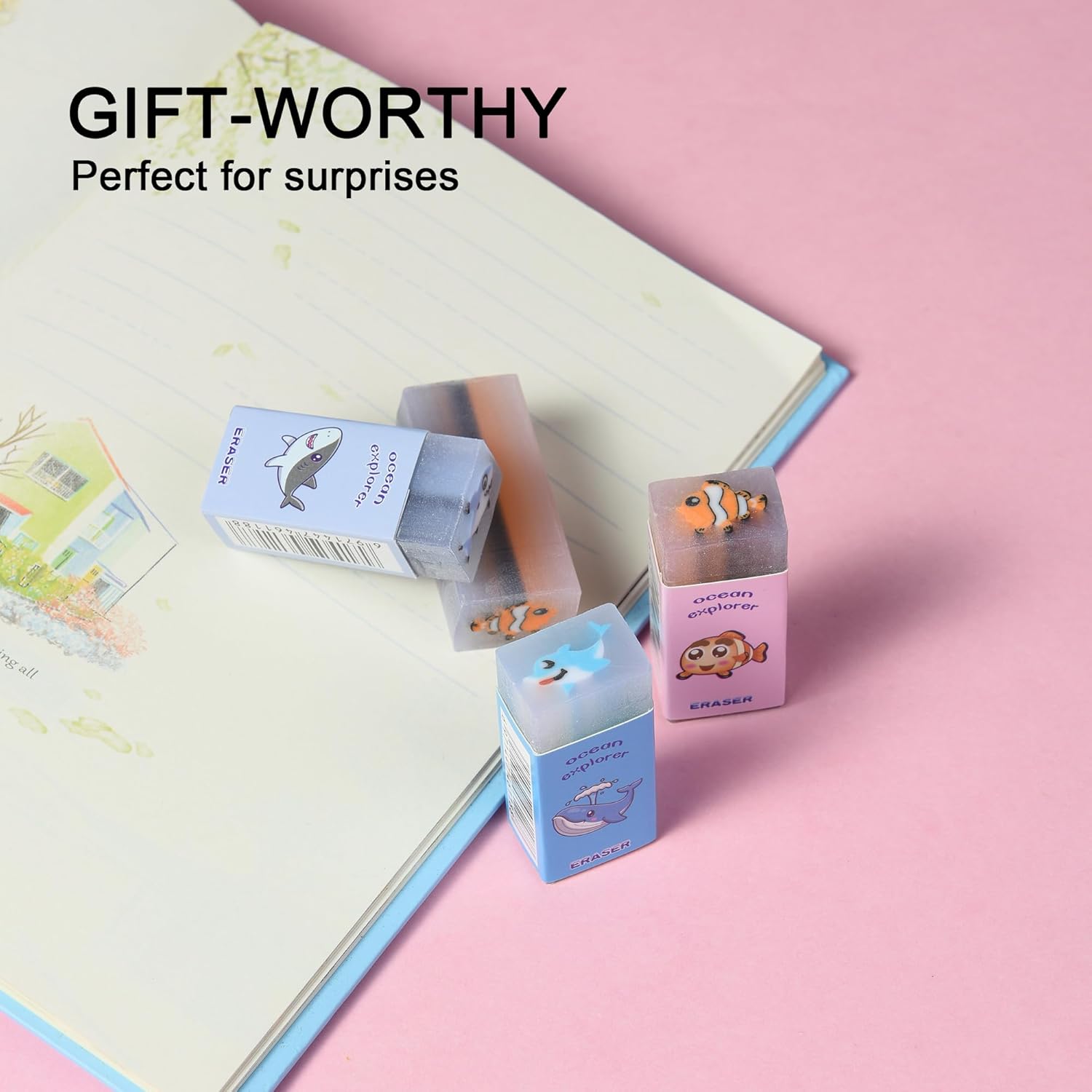 - Fun Sea Animal Erasers: Enjoy adorable sea creature-shaped erasers