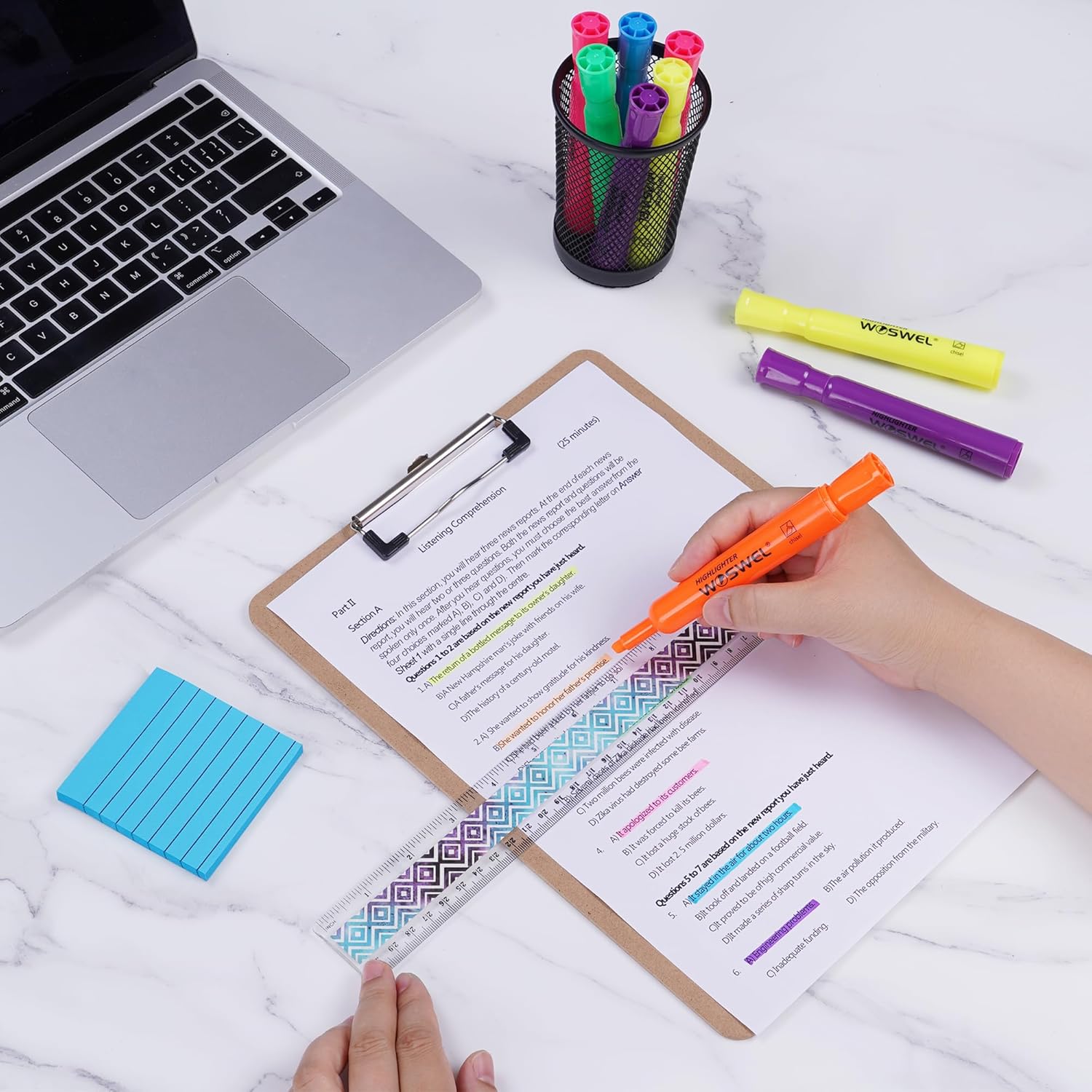 - The highlighters feature quick-drying ink to prevent smears and smudges (let ink dry before highlighting).