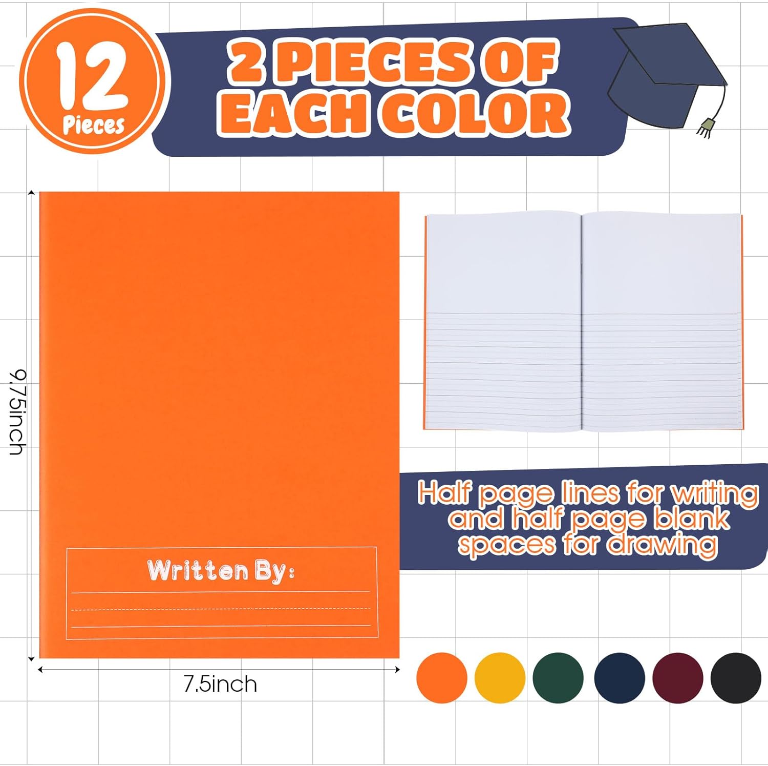 Henoyso 12 Pcs Primary Composition Notebook K-2 9 3/4 x 7 1/2 Inch Primary Journal, Back to School Supplies, Bulk Blank Writing Book for Kid to Write Draw Journal 60 Page Notebooks (Dark Color)