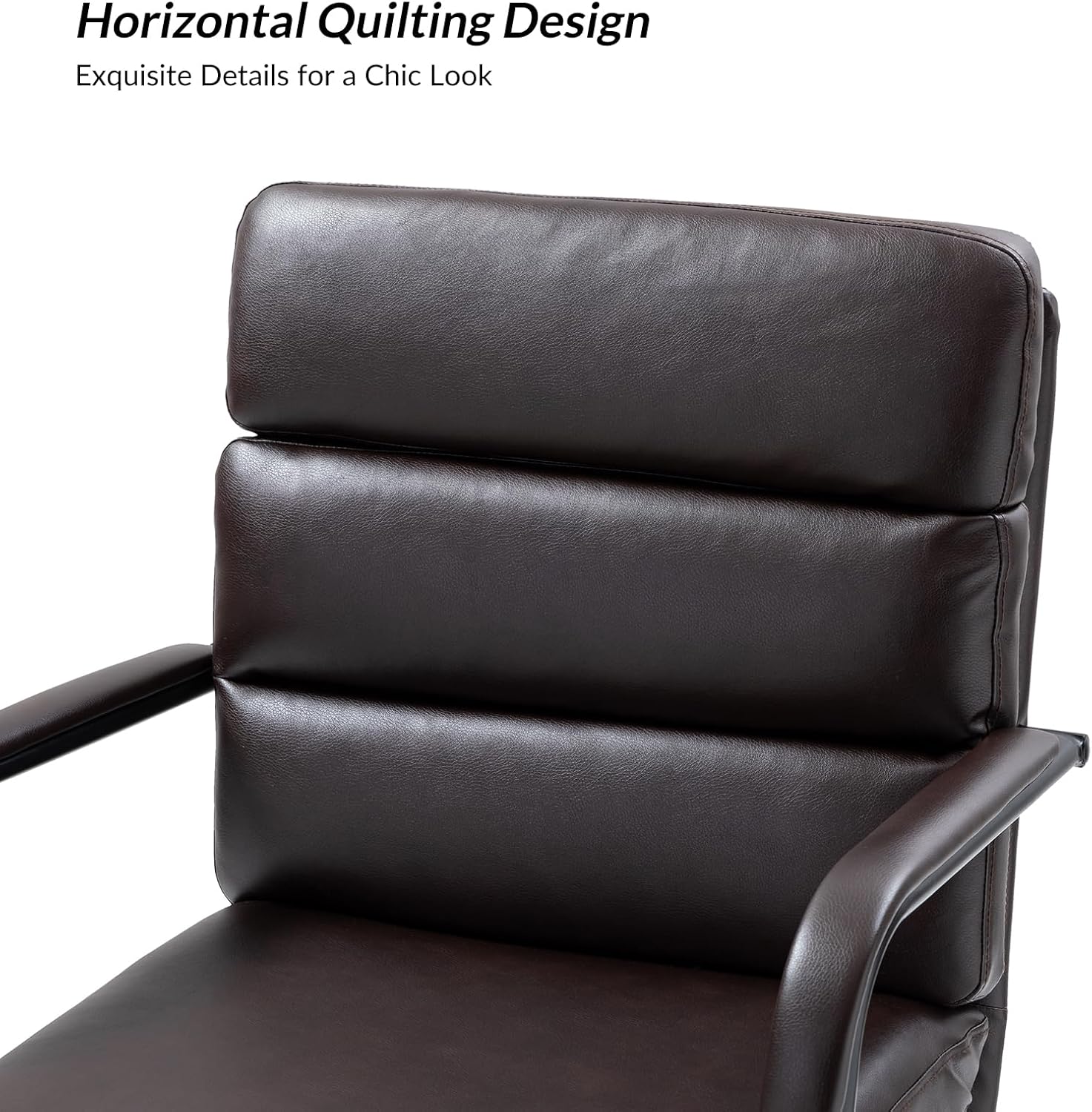 HULALA HOME Modern Faux Leather Home Office Chair with Tilt Lock & Metal Base, Desk Chair with Wheels & Padded Cushion, 360° Swivel Wide Seat Computer Task Chair, Brown