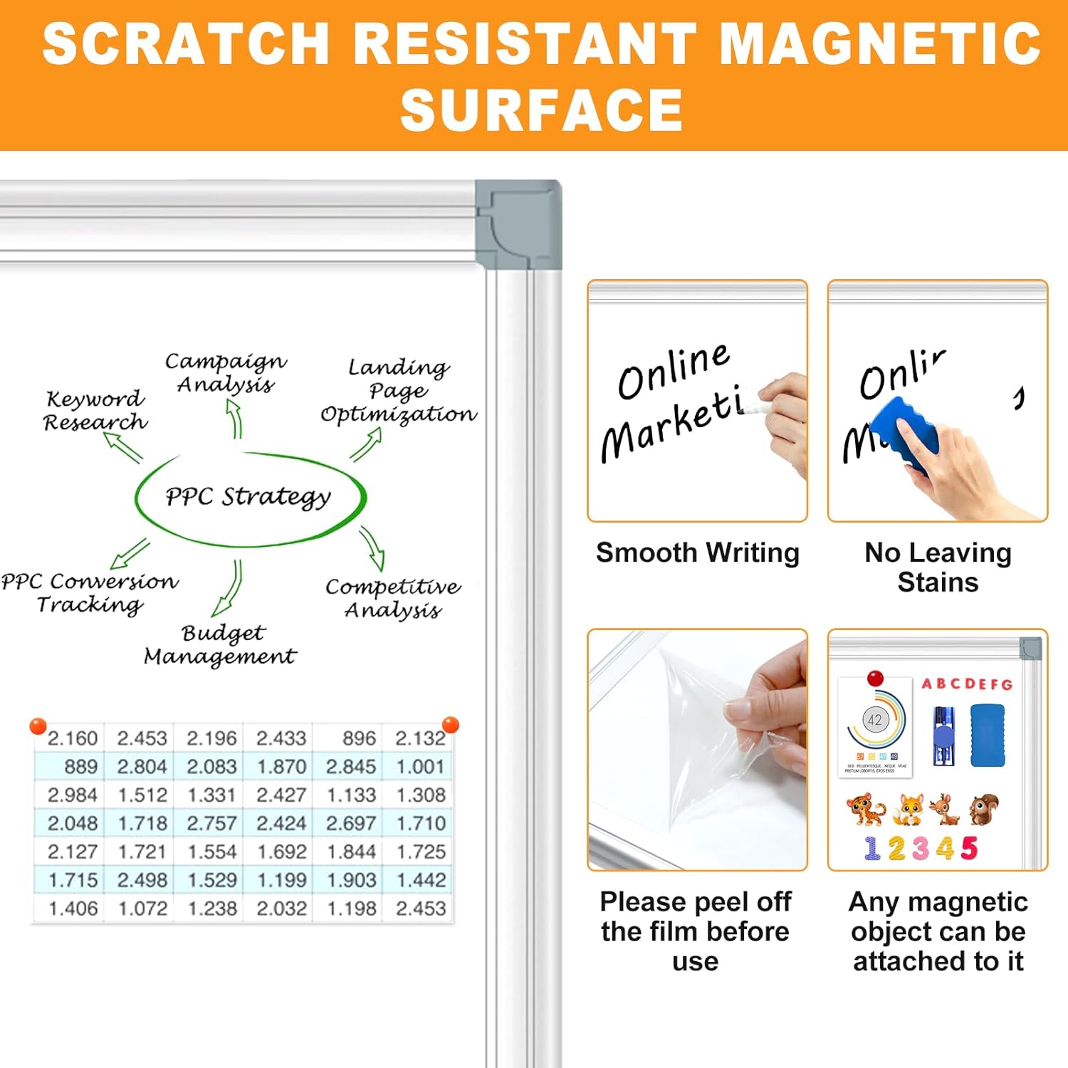 - Smooth Writing & Easy to Wipe: This scratch-resistant magnetic dry erase board has a smooth surface, so it is easy to write with all dry-erase markers and easy to wipe. Magnetic surface allows it is able to use magnets on it to attach menus, photos, memos, files, notes to spotlight the work or other important things.