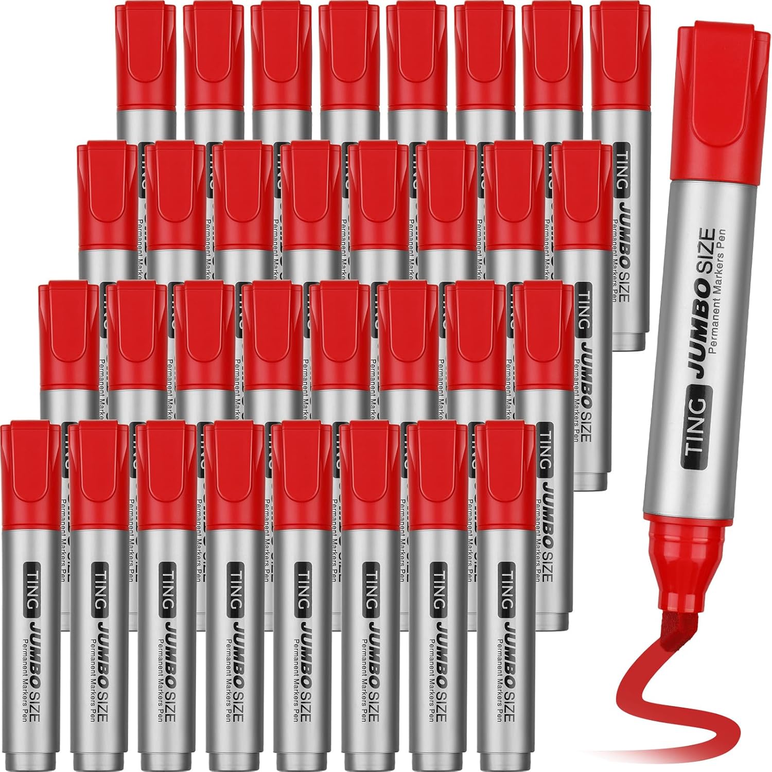 Fuutreo 32 Pcs Jumbo Permanent Markers Bulk Large Chisel Tip Permanent Markers Waterproof Jumbo Pens Quick Drying Office Teacher Supplies(Red)