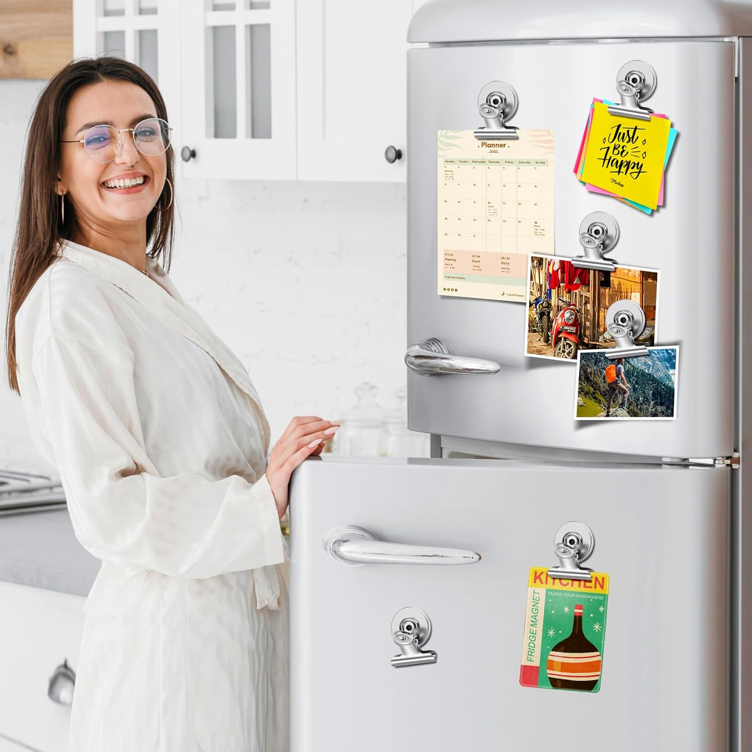 - 🧡【Cute Design】These magnetic clips are designed to be very cute and beautiful, and can add spice to your life. It can be used to keep track of your daily to-do list, decorate photos, attach stickers when doing crafts, show your newly learned recipes, show your kids' latest drawings, and it's cute and convenient!