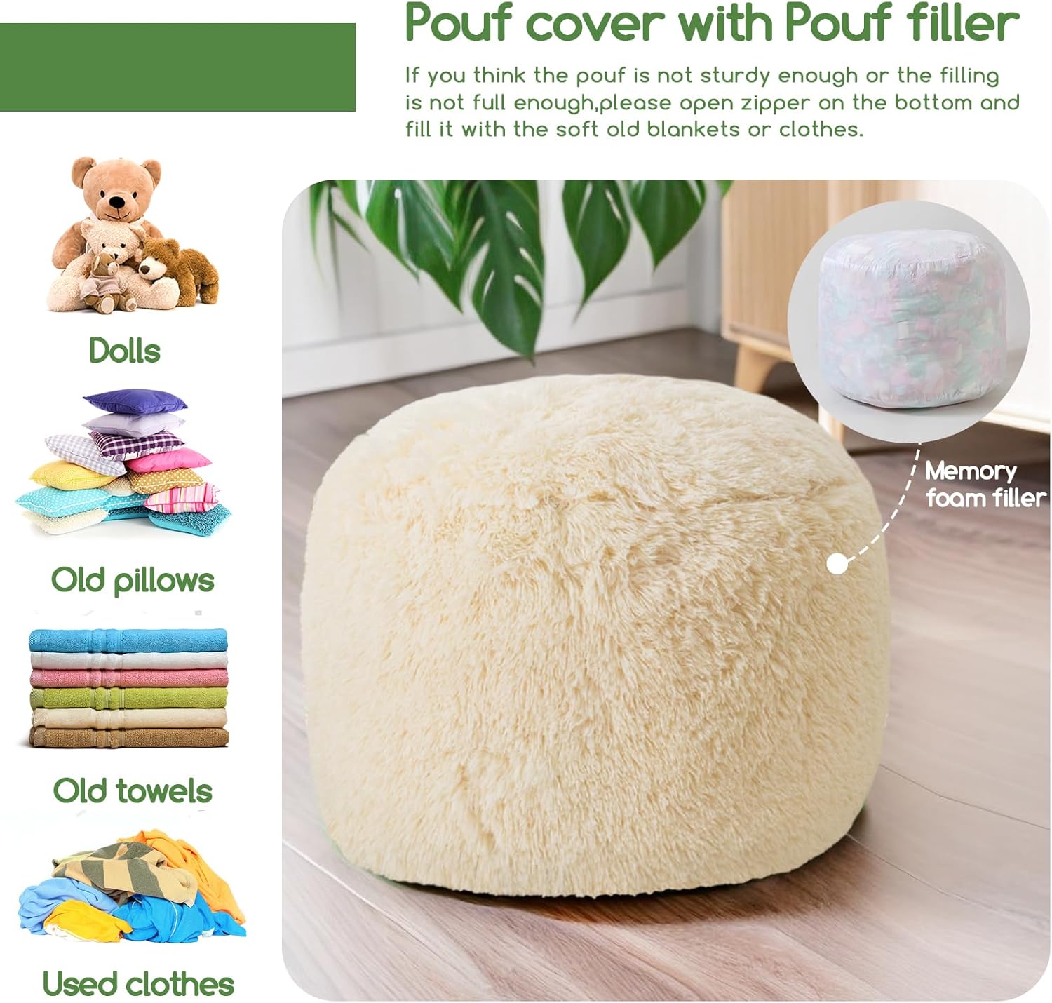 - The HIGOGOGO pouf ottoman with a soft and plush long-haired outer layer and full filling, making it perfect for use as an ottoman foot rest or seat cushion.20x20x15 inch size, this ottoman pouf is versatile enough for use with a coffee table, side table, or floor cushion in any room of the house.