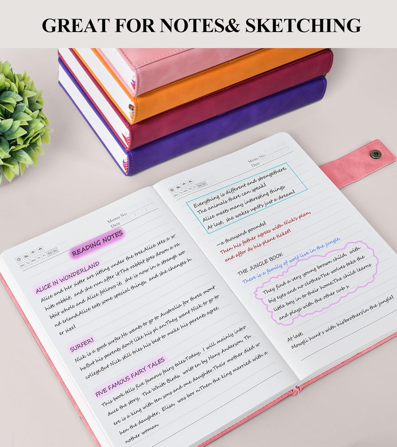 - 【CONVENIENT FEATURES FOR ORGANIZATION】:The leather journal includes 3 ribbon bookmarks, allowing you to easily mark important pages or sections. The 180° lay-flat design ensures that the notebook lies flat on any surface, making it comfortable to write in for extended periods. The metal snap closure design keeps the notebook securely closed, protecting your notes from damage.These features make the notebook a versatile tool for various settings, from work and school to personal use.