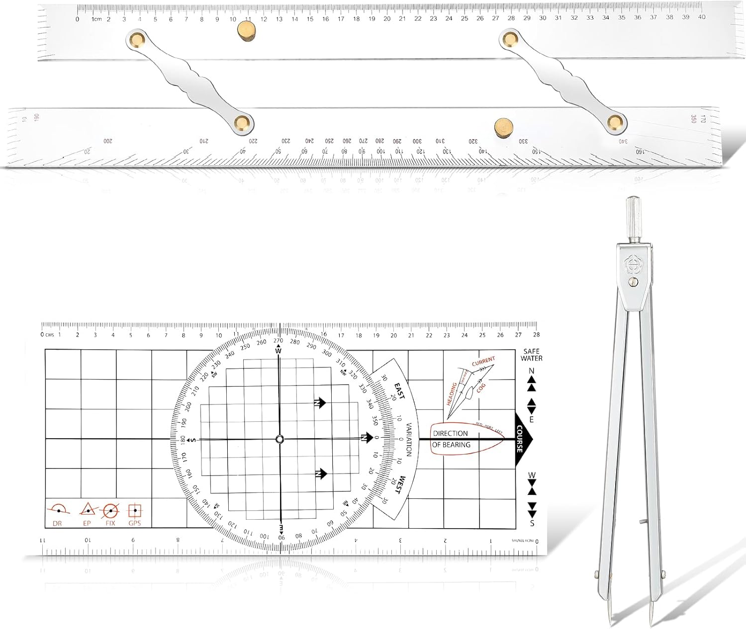 - Comprehensive Navigation Kit: this basic navigation set includes 1 marine nautical protractor, 1 piece of 16 inch marine parallel ruler, and 1 piece of 6 inch marine navigation fixed point divider; A comprehensive package for all your navigation tasks