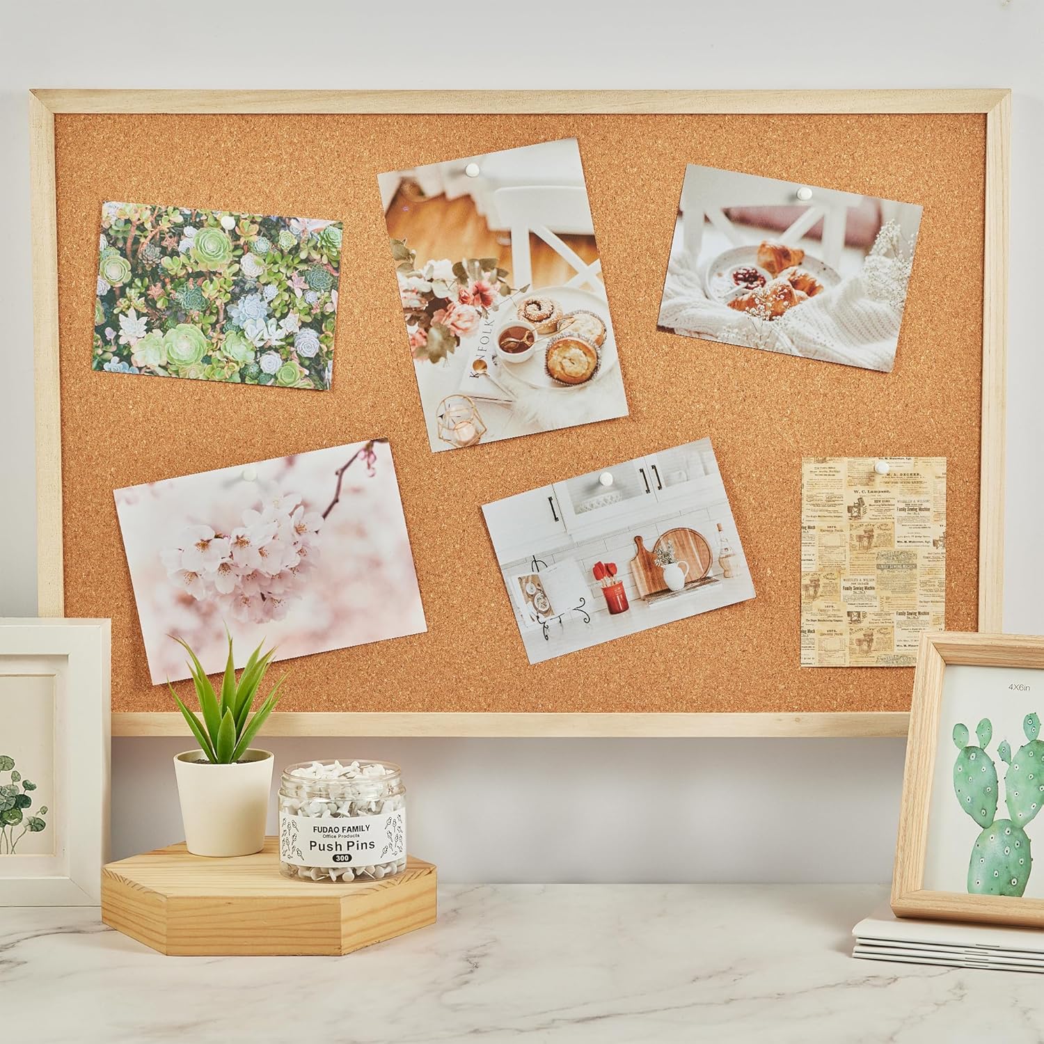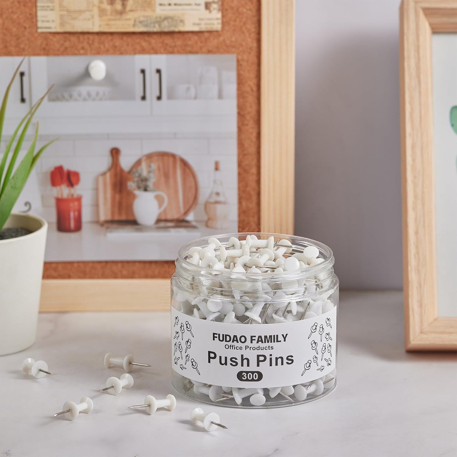FUDAO FAMILY 300pcs Push Pins for Bulletin Board, Thumb Tacks for Wall Corkboard, Map Pins - Home Office Craft Projects Plastic Head Steel Push Pin (White)
