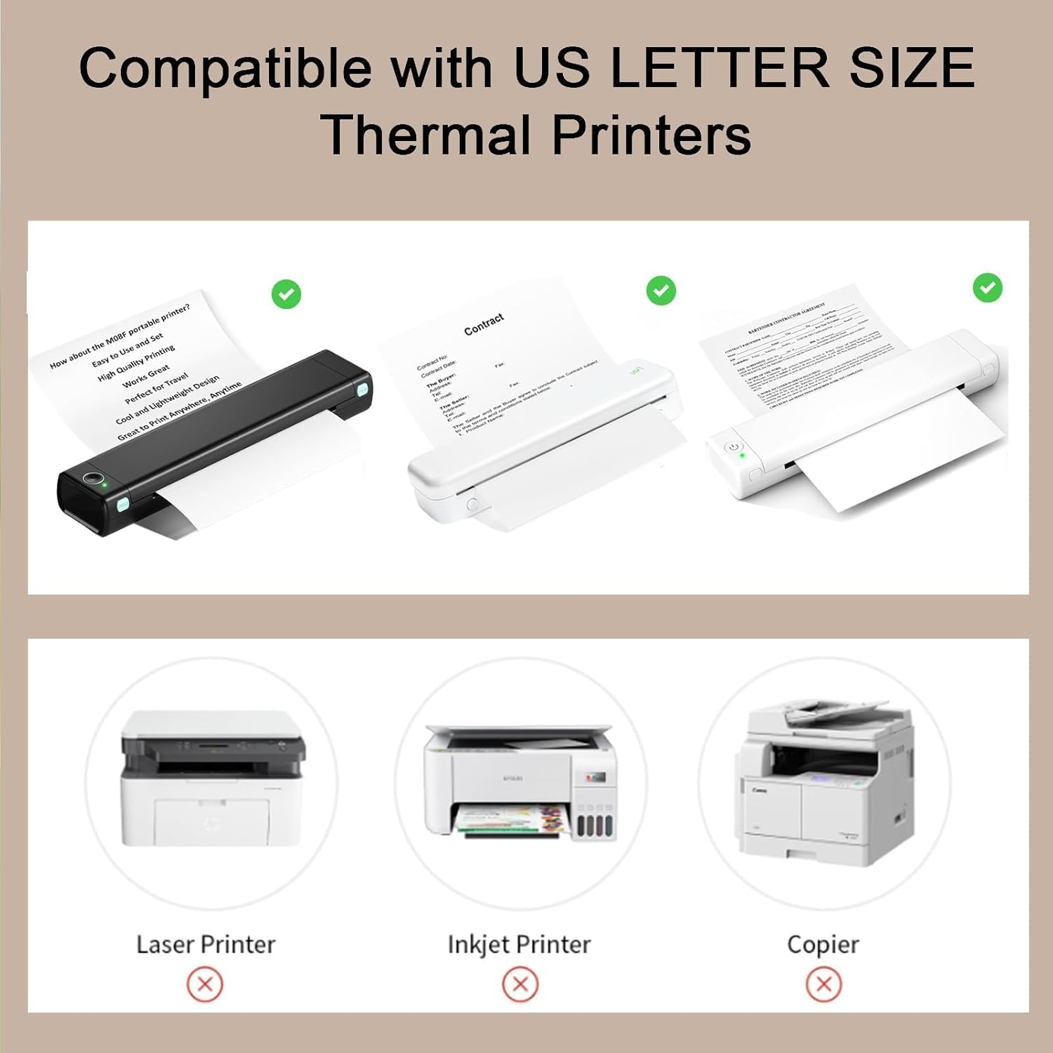- Portable Printer Compatibility: Thermal paper 8.5 x 11 only suitable for letter paper thermal printer not for traditional inkjet or laser printer. It is easy to use the thermal paper with all the corresponding paper size (8.5"×11") printer without any compatibility issues.