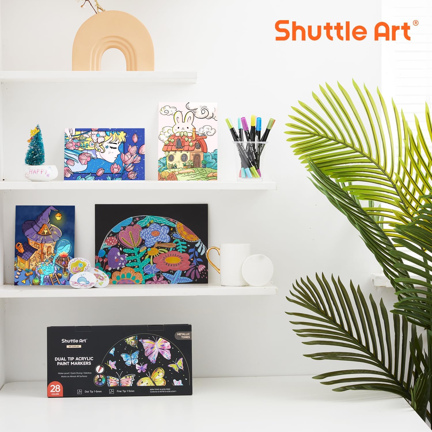 - 【28 UNIQUE AND METALLIC COLORS】: Shuttle Art 28 acrylic paint markers set contains 28 METALLIC colors: With so much colors, you can almost complete all of your daily creations.