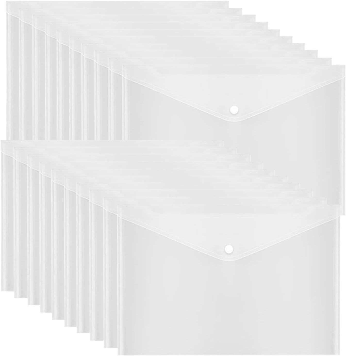 - Package includes: 20pcs clear plastic envelope folders with button snap closure. The envelope bag can be used for school, office, business travel, home, work, meetings and more
