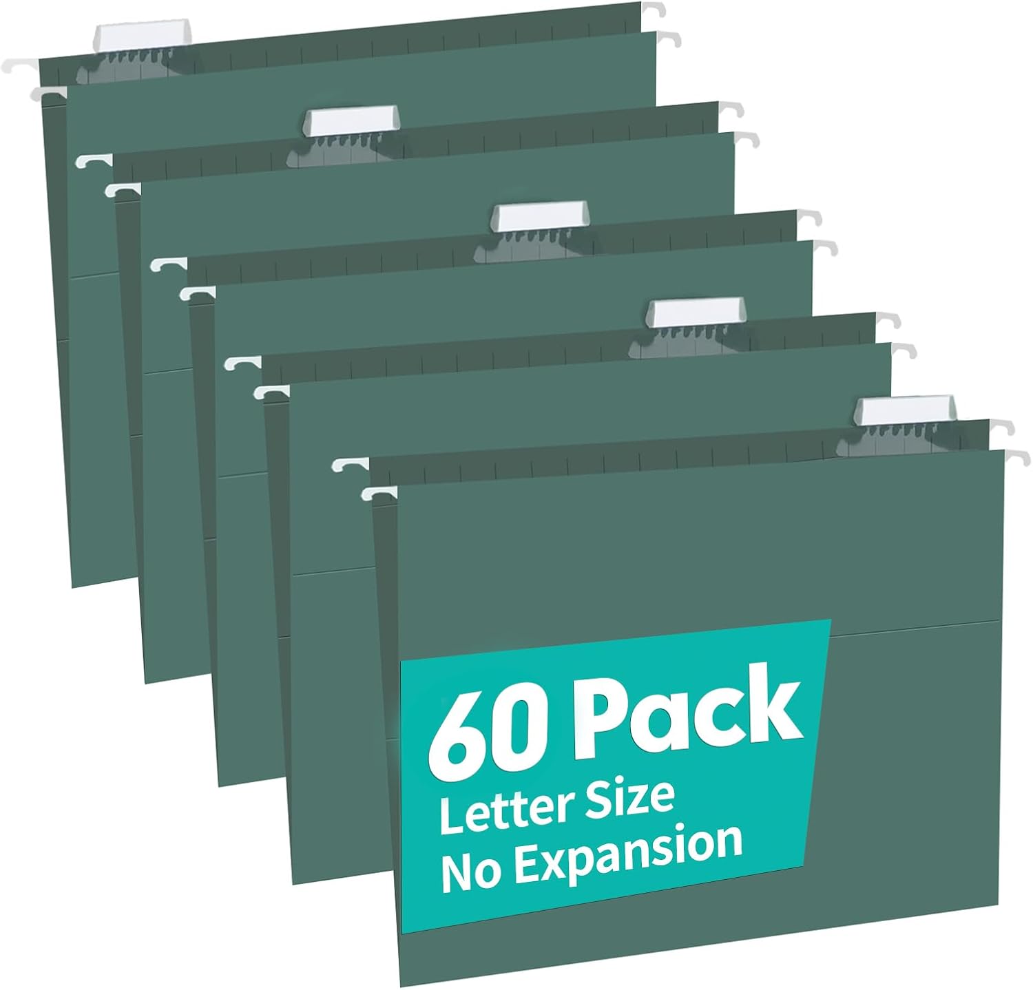 HERKKA Extra Capacity Hanging File Folders, 60 Pack Reinforced Letter Size Hanging Folders with Heavy Duty 0 Inch Expansion, Designed for Bulky Files, Green