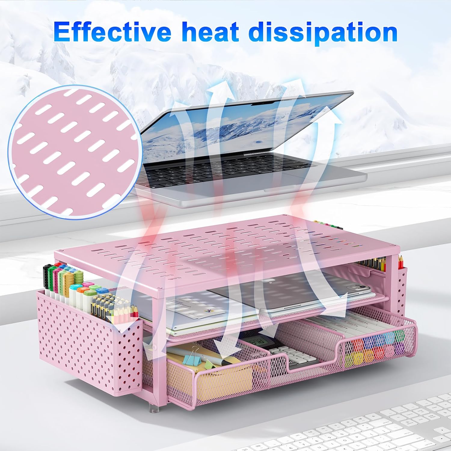 - 【Unique Desk Decor】: The monitor stand has a classic pink coating, adding elegance and modernity to your office while being sturdy and practical. allowing you to work in a cozy and tidy environment with greater comfort and efficiency.