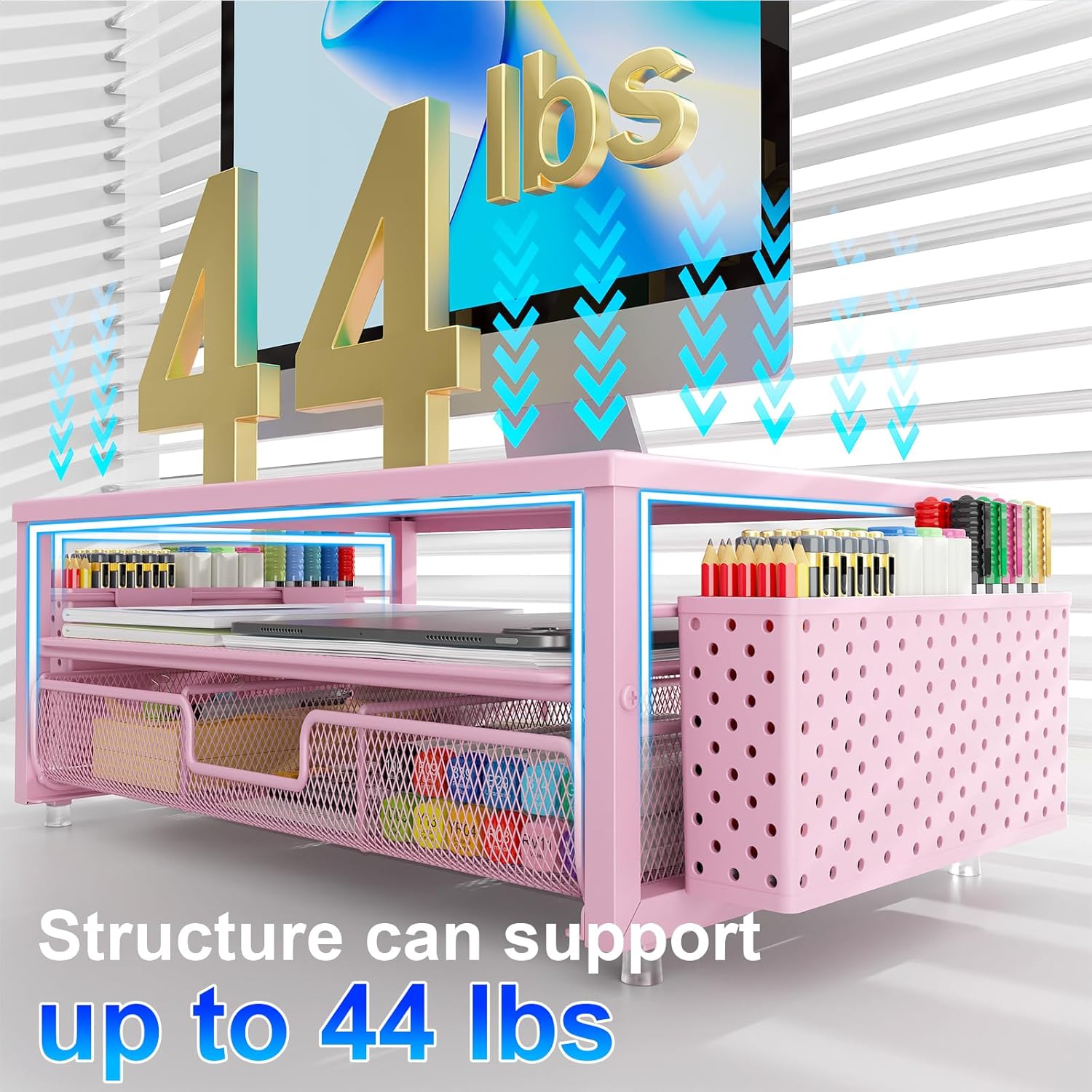 gianotter Desk Organizers and Accessories, Monitor Stand with Drawer and 2 Pen Holder, Desktop Organizer Suitable for Offices and Dormitories (Pink)