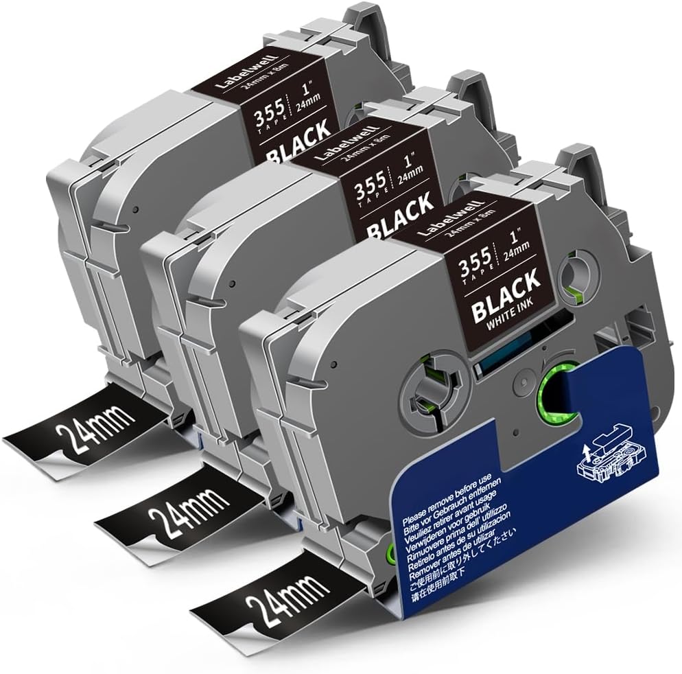 - Package Contents: 3-Pack Replacement for Brother P Touch Label Tape TZe-355 TZe355 TZ355, Color:White on Black (White Ink on Black Tape)