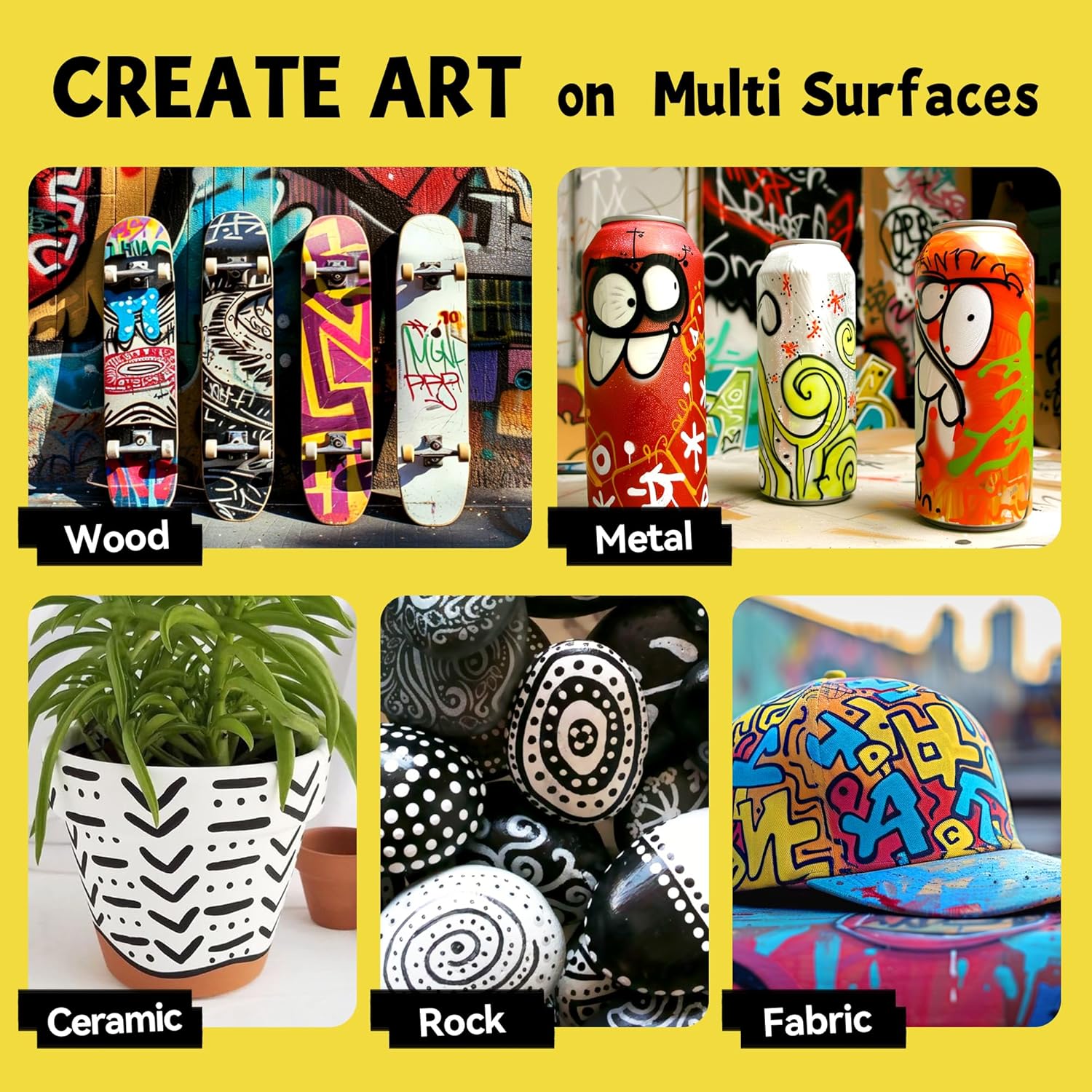 - The permanent acrylic markers black set is perfect for artists to use on DIY designs, arts, and crafts, and painting projects.