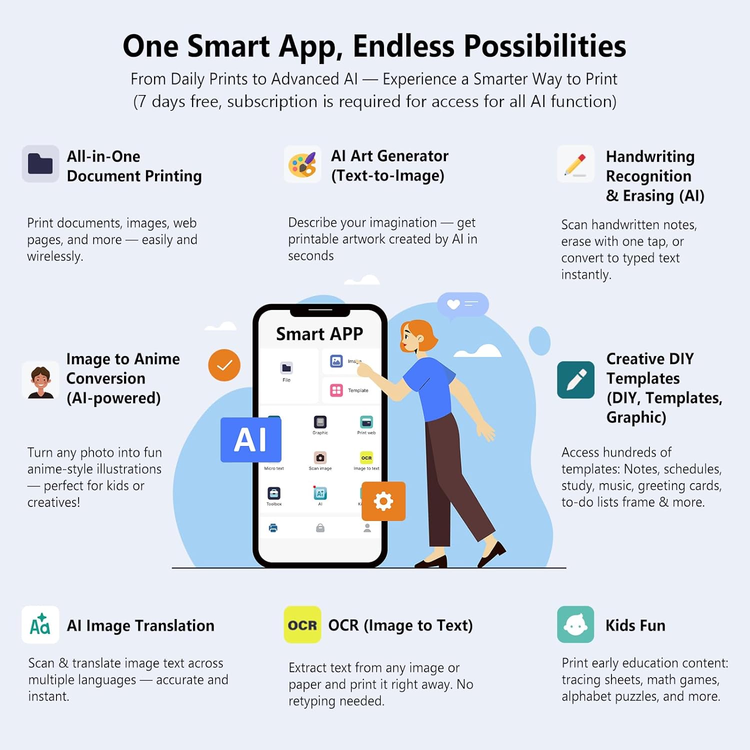 - Ultra-Portable Design - This printer measures 1.7’’ x 10.4’’ x 2.9’’, Weighs 1.75LB. Perfect for on-the-go printing during travels, work, or university, it easily fits into backpacks or briefcases. Ideal for emergency scenarios, contracts, office documents, and more.