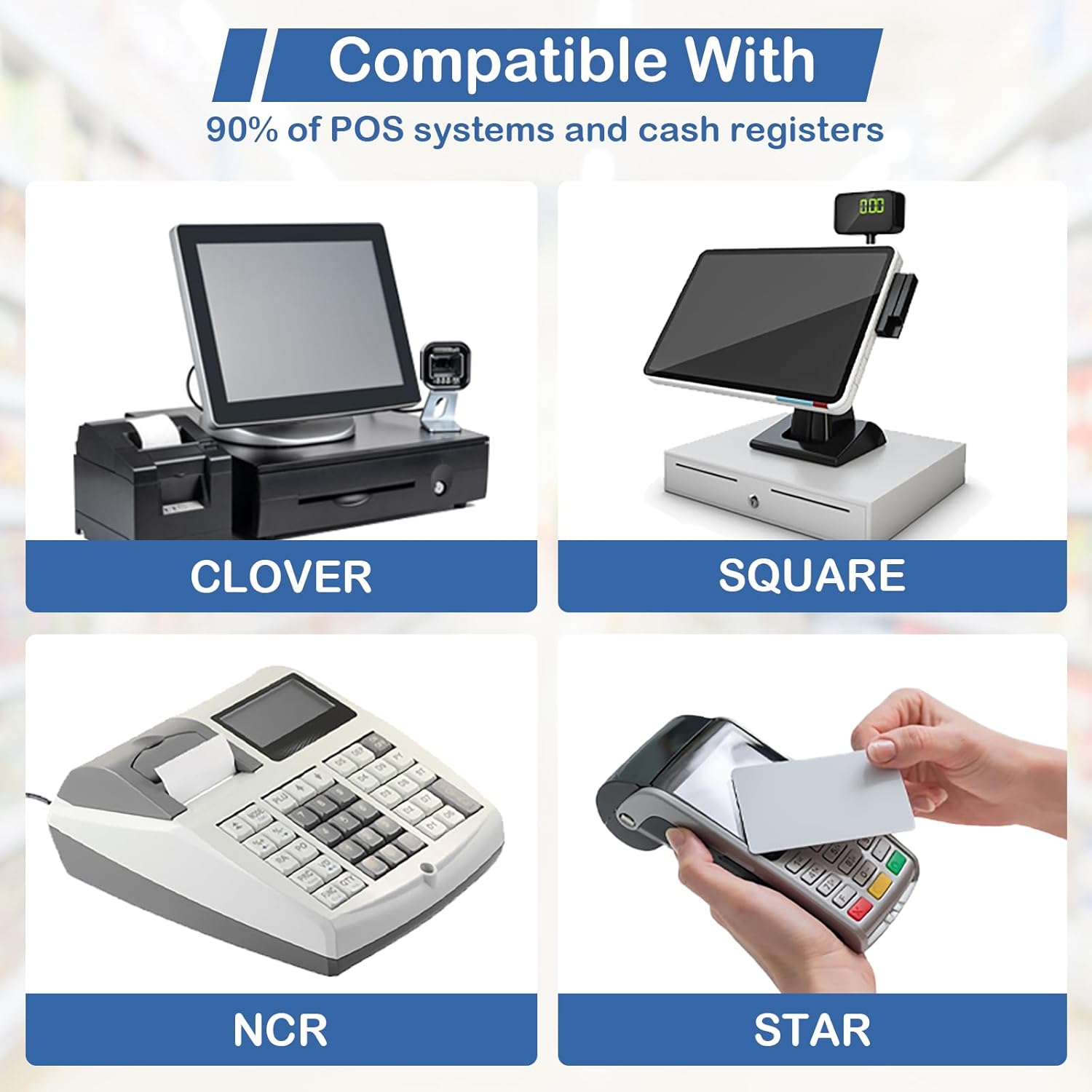 - Strong Compatibility:3 inch thermal paper rolls are fits for Clover Flex Mobile POS, Clover Mini, Square Terminal Credit Card Machines, Royal Alpha, Nurit, Omni, VeriFone VX520, Remote Terminal Citizen CBM262, CBM270 EBW Auto Stik 950 EMCO, Ingenico ICT220, ICT250, First Data FD400, and more