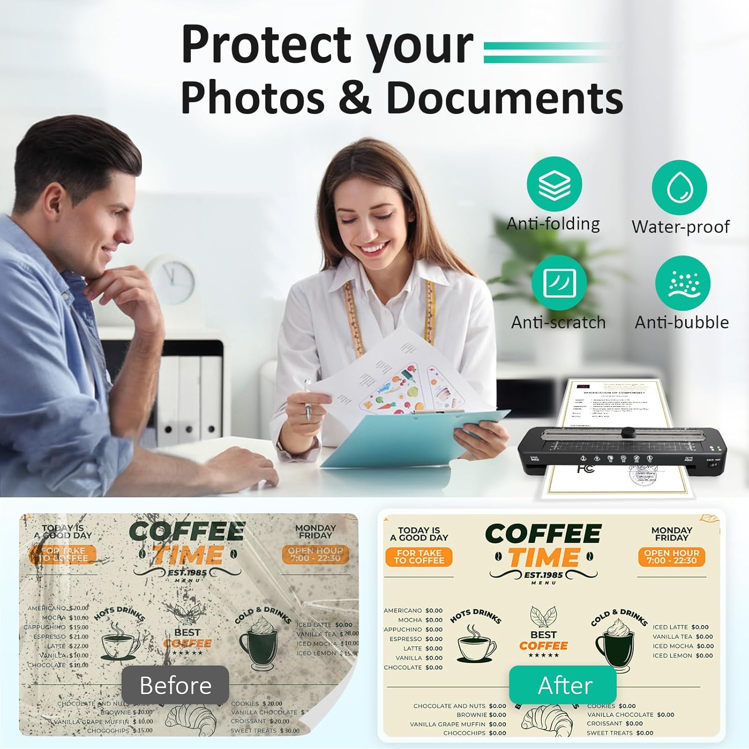 - Wide Application: 13 inch lamination machine has a wide range of applications suitable for laminating A3/A4/A5/A6 size paper, which compatible with 80-125MIC (3-5Mil) laminating pouches. It's usually used for preserving important documents, precious photos and so on. This laminator kit is the best gift for friends and family.