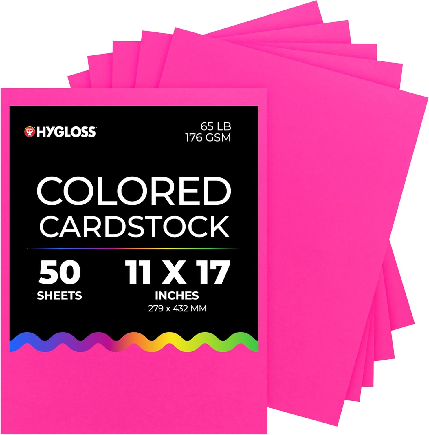 Hygloss Fuchsia Bright Colored Cardstock - 11x17-Inch, 50 Sheets, 65 lb/ 176 gsm, Fade-Resistant, Acid-Free Color Card Stock Paper