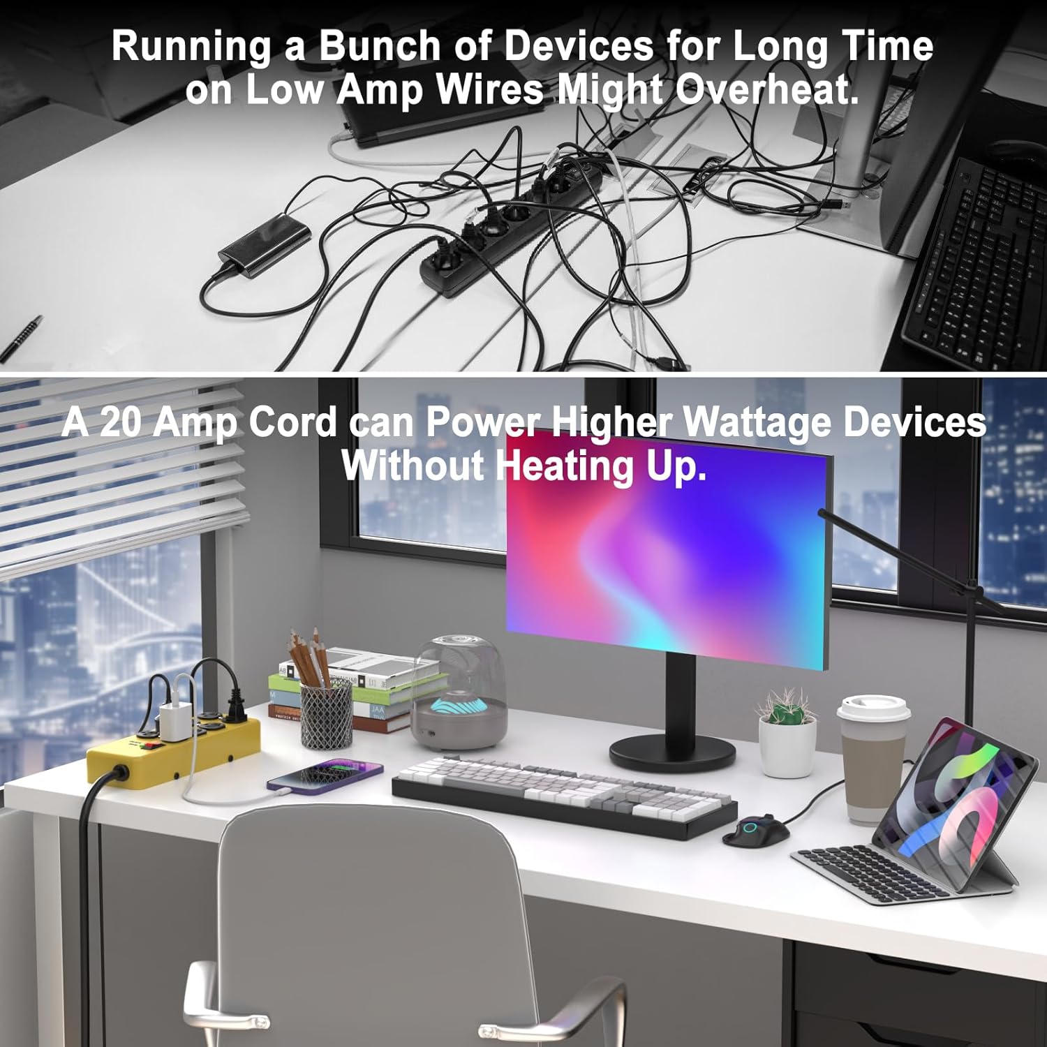 - Compatibility: This multi-outlet surge protector power strip is compatible with both 15A and 20A outlets. However, if used in a 15A system, ensure not to exceed 1875W to avoid overloading. It provides a reliable and efficient power solution for everyday use.