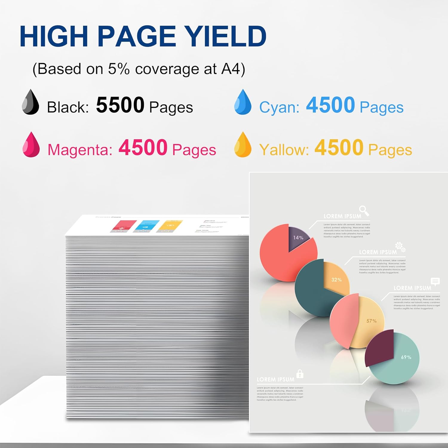 - High Page Yield: Achieves up to 5,500 pages for 212A W2120A black toner and 4,500 pages for each 212A W2121A W2122A W2123A color toner (Letter/A4, at 5% coverage)