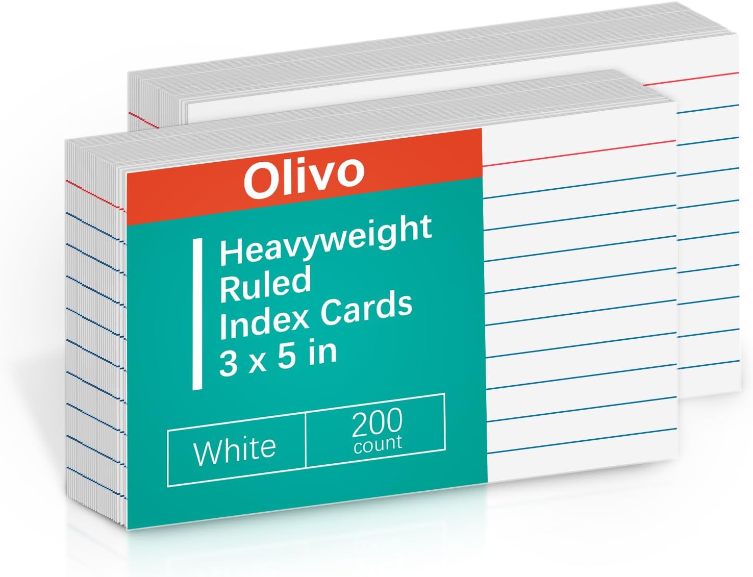Index Cards 3x5 Lined Ruled Flash Note Cards 3" x 5", White, 200 Count, 200 GSM Heavy Weight