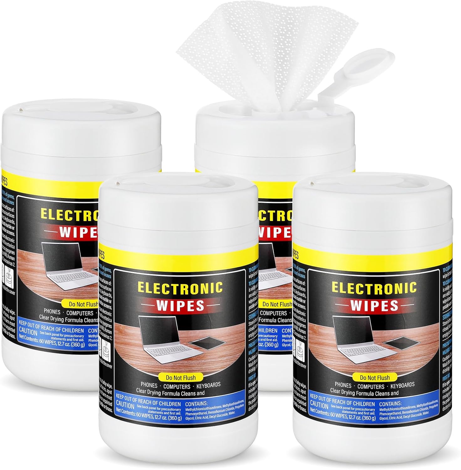 4 Pack 240 Count Electronic Wipes Screen Cleaner Wipes for Computer Laptop Monitor Lens Phone TV Screens Keyboard Cleaning