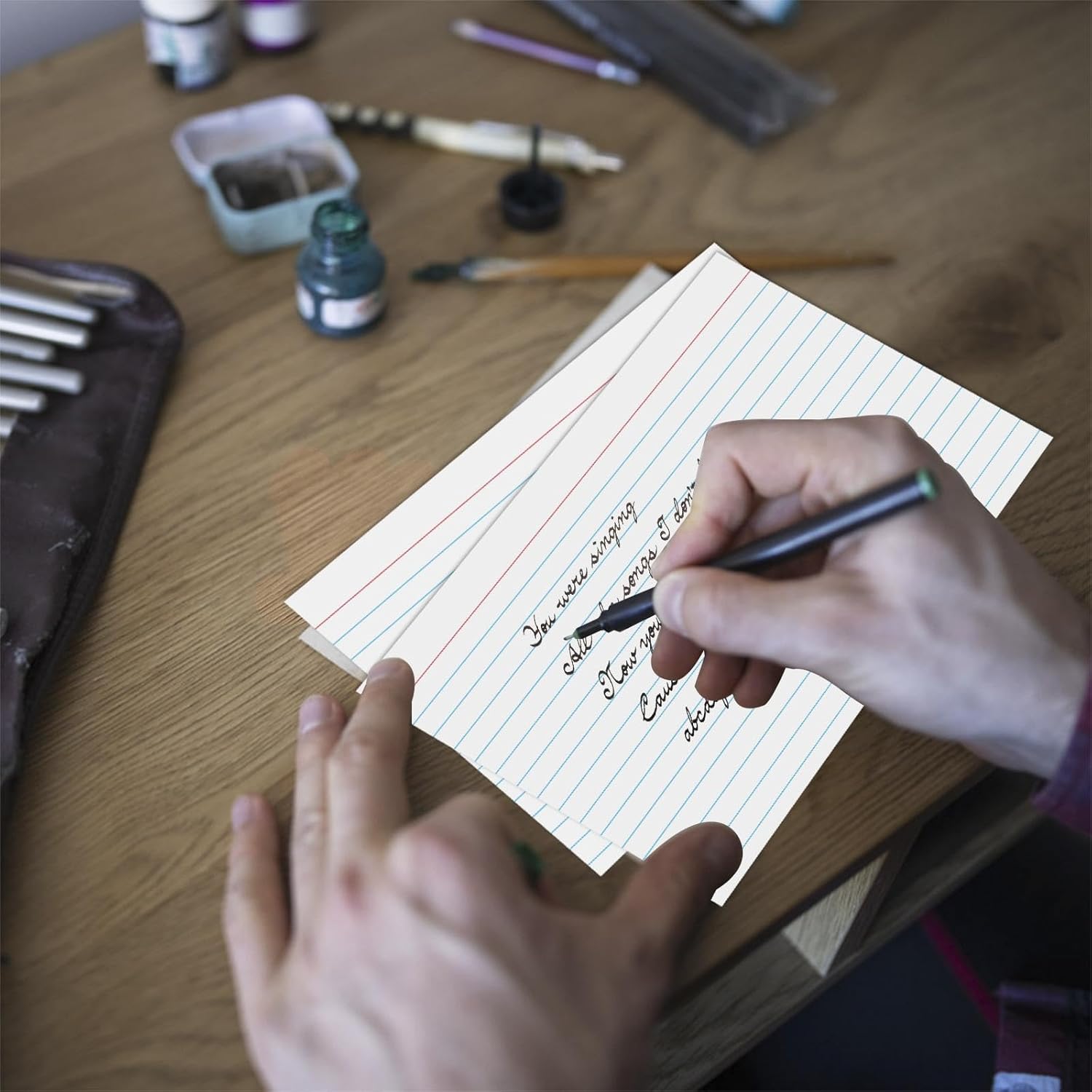 - Package Included: Our white index cards are designed with the perfect line space to make writing easier. index cards are ruled for fast and legible note-taking. Experience the simplicity of organizing your tasks, notes, and thoughts on these small pocket-sized ruled index cards. Each package includes 100 sheets of ruled 160g 5-inch x 8-inch single-sided, blue-lined note cards with header portions at the top of card flashcards for studying. Since the index cards are not fixed, you can take random numbers of index cards with you at any time or anywhere.