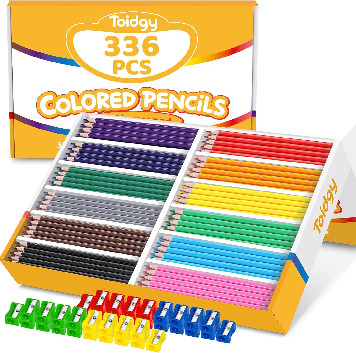 336 Packs Colored Pencils Bulk Classroom, Colored Pencils for Kids 12 Assorted Colors, Coloring Pencil Set Plus 36 Sharpeners, Pre-sharpened Color Pencils, Back to School Supplies Bulk for Teachers