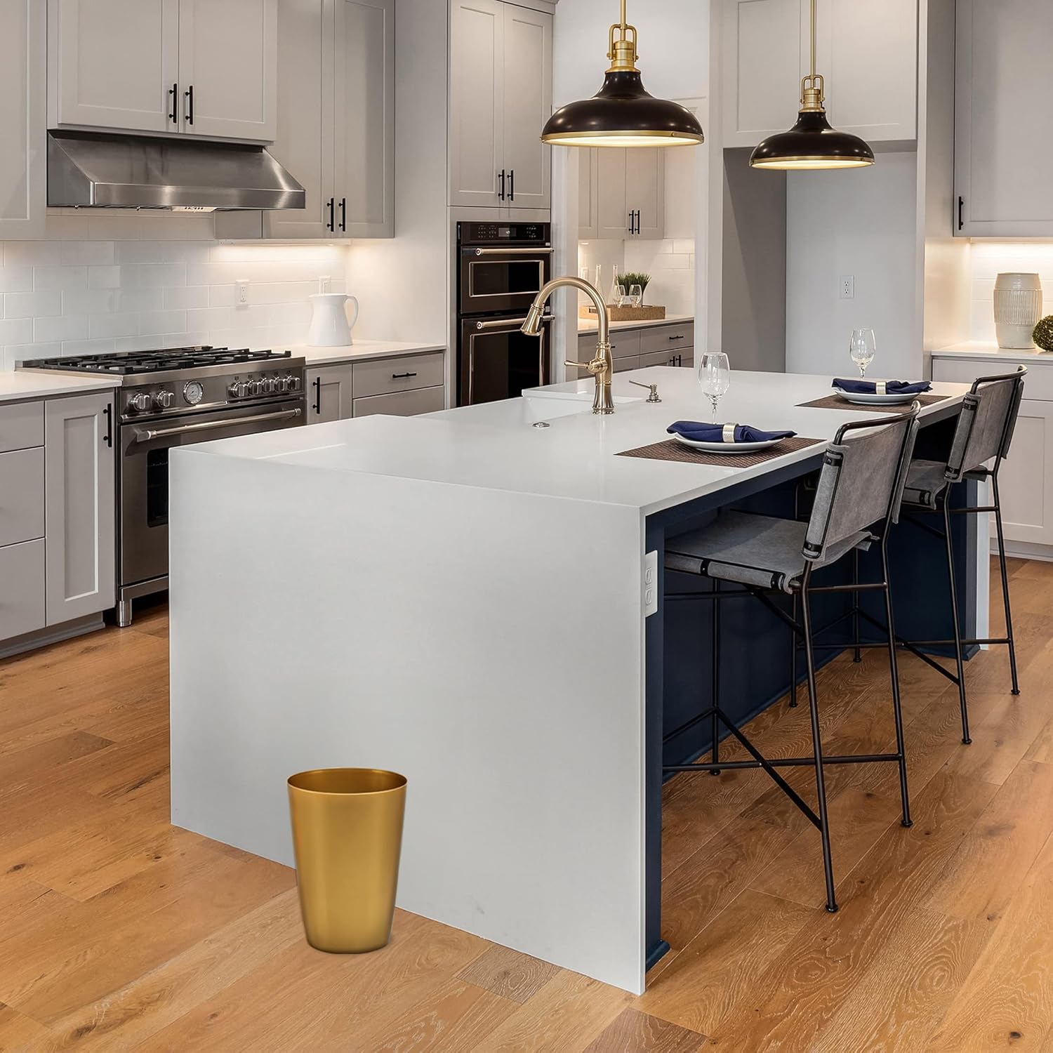 HOLDN’ STORAGE Small Trash Can - Set of 2 Open Top Waste Bin of 1.58 Gallon, Compact Waste Can Perfect for Bathroom, Kitchen, Office, Dorm - Durable Garbage Can - Soft Brass